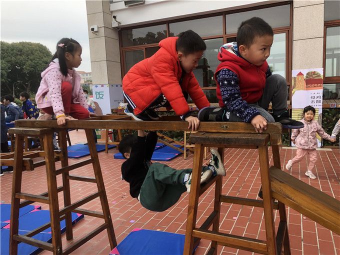 《纲要》提出:“培养幼儿对体育活动的兴趣是幼儿园体育的重要目标,要根据幼儿的特点组织生动有趣、形式多样的体育活动,吸引幼儿主动参与。”作为幼儿体育活动的重要组织形式之一——晨间锻炼能使幼儿提高机体的运作能力,使幼儿愉快而精神饱满地迎接一天的生活学习和游戏。在晨间活动中,探索木梯组合让幼儿成了游戏的主宰者,让幼儿在创意无限中同时获得了多项体能的锻炼。