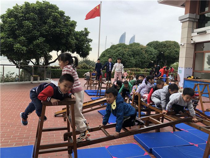 在活动中,我们鼓励幼儿尝试用不同的方法探索木梯与各种材料的创意组合,老师们只是尽可能为幼儿提供游戏的材料、创设游戏的环境、规划游戏时间。一次次的游戏场景看似只是幼儿在与材料互动,但是在游戏过程中,幼儿的创造性思维、动手能力及运动能力、自我保护能力、自我评价能力都在悄然发生变化。期待在以后的晨间木梯活动中,我们能看幼儿们更大的进步。