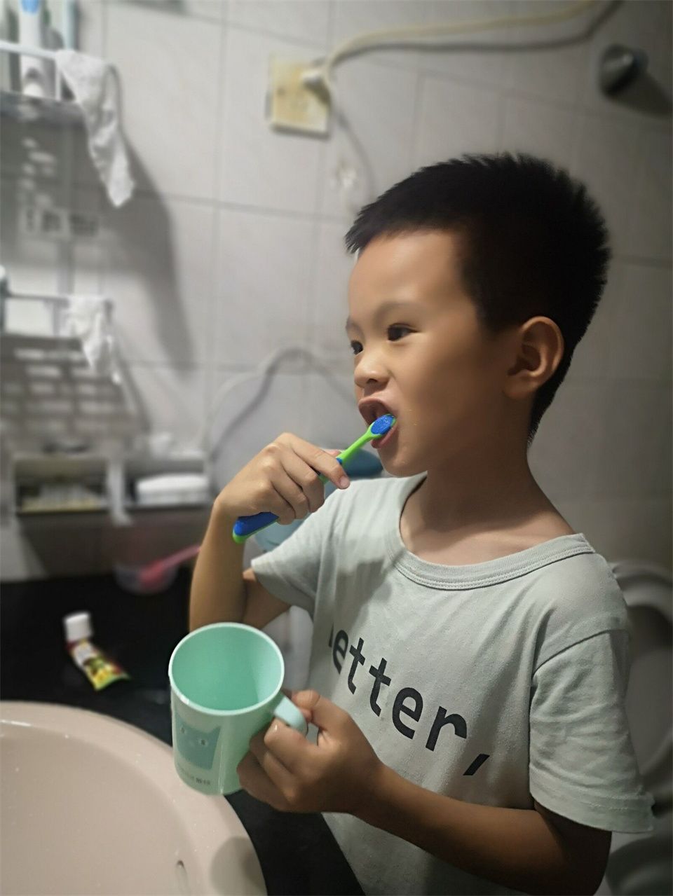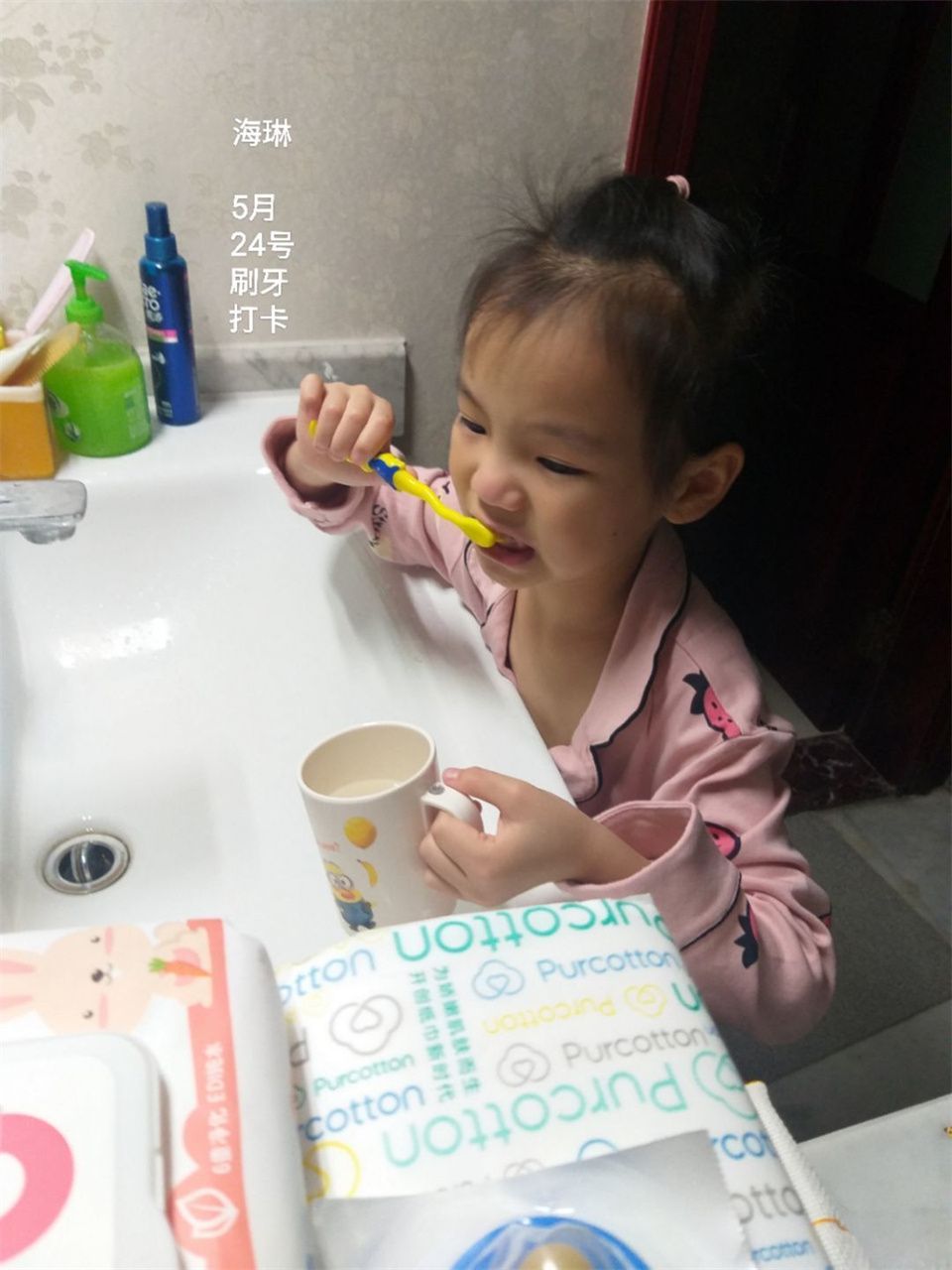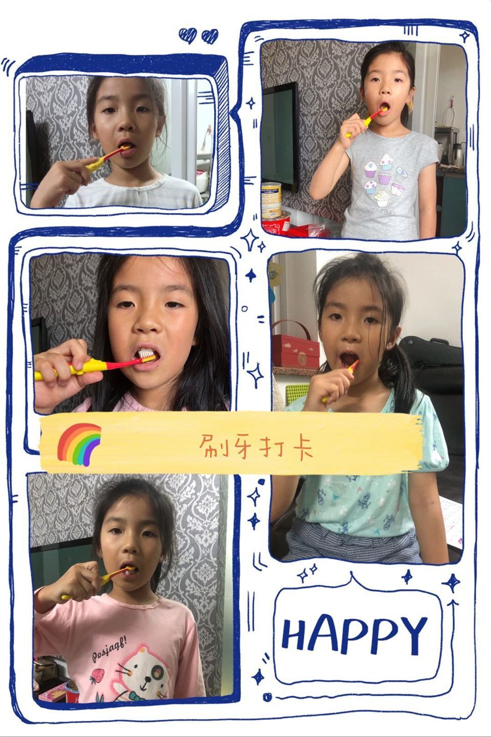 瞧,孩子们天天在家自己刷牙,爸爸妈妈每天用手机记录孩子们的点滴进步,千里之行,始于足下。