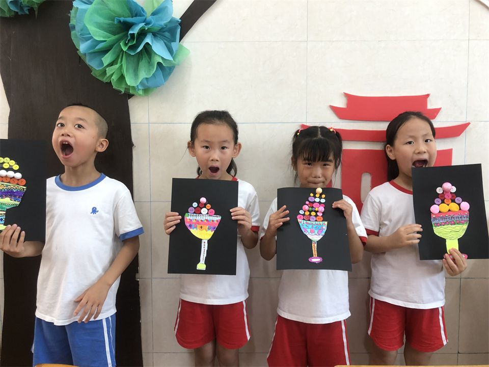 小朋友们通过自己动手,制作出了夏日解暑神奇,为它们穿上了夏天的颜色。在一次次的美工活动中,锻炼了小朋友的动手能力、提高了小朋友的欣赏审美。小朋友充分的感受到夏天的美好以及美工活动带来的乐趣。快带着我们的“解暑神器”快乐出游吧!