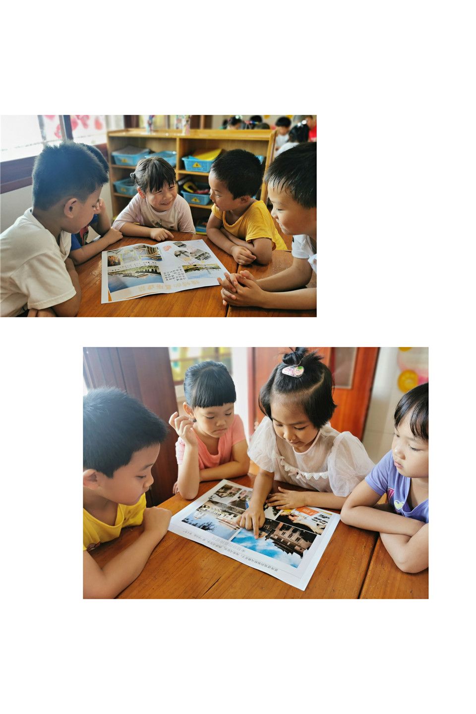 孩子们通过自己的查阅、了解以及同伴的分享活动,对嘉庚风格建筑有了一定的了解,他们知道这些嘉庚风格的建筑是一个叫陈嘉庚的爷爷建的,嘉庚风格建筑的特点就是“穿西装,戴斗笠”,体现了中西建筑文化的融合。嘉庚建筑呈现出闽南式屋顶,西洋式屋身,南洋建筑的拼花、细作、线脚等;其空间结构上注重与环境的协调;在选材用工上“凡本地可取之物料,宜尽先取本地生产之物为至要”等。