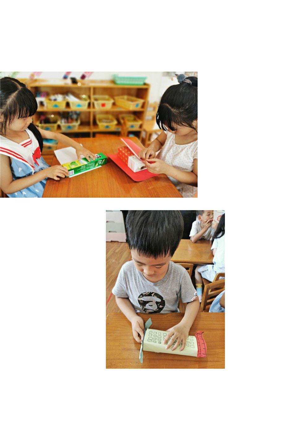 彩色的蜡纸、废旧的纸盒,在孩子们小巧手的一番创造下的“嘉庚建筑”也是别具风格。