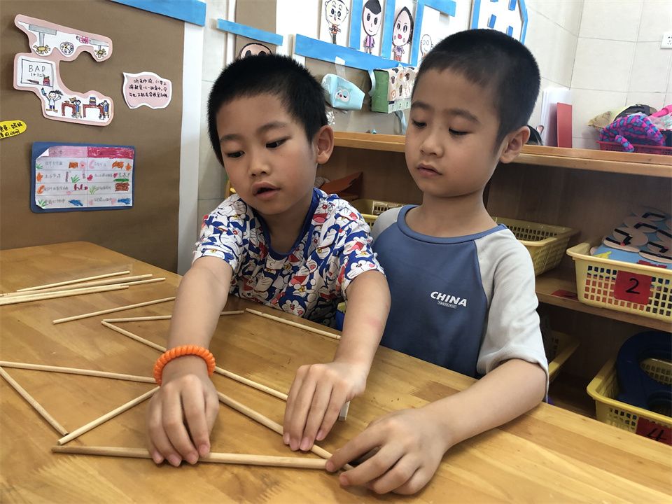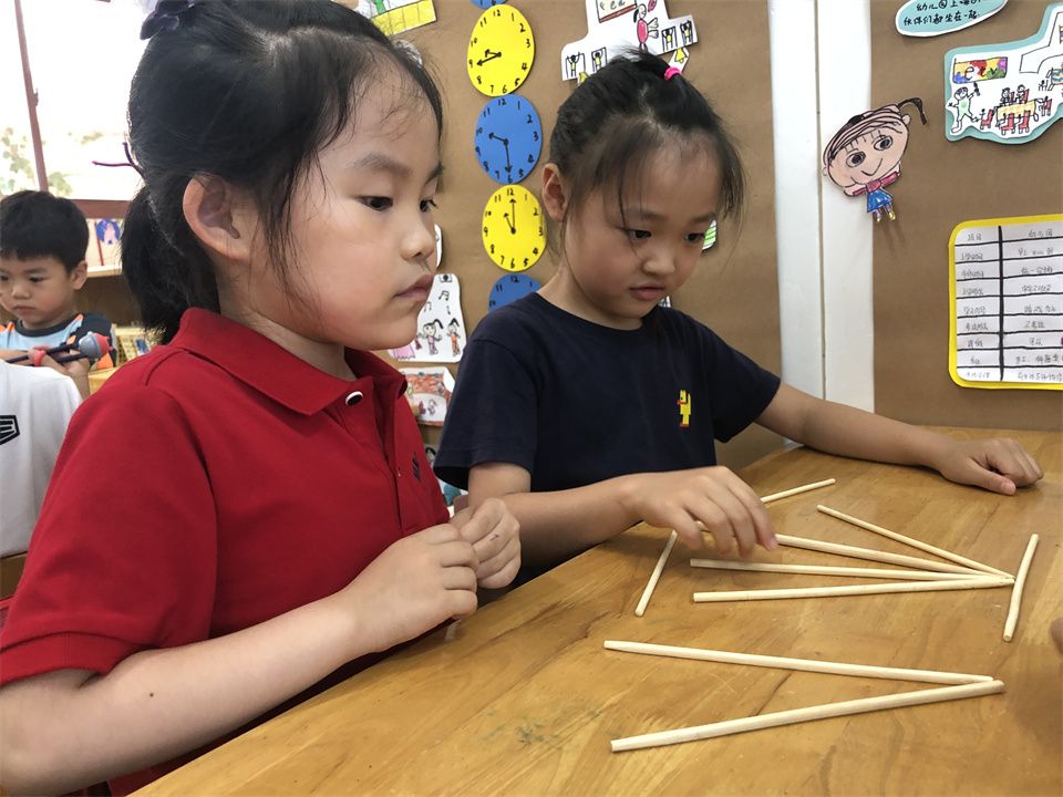 听说这是爸爸妈妈小时候都在玩的挑棍游戏,现在也让我们用筷子来试一试吧。小朋友们在游戏中变得更细心了,还能将数学融入到游戏中。