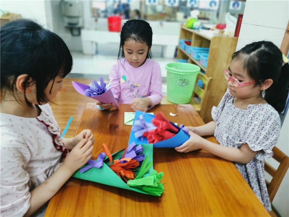 我用小小手做一束心愿花,把最美好的祝愿送给最亲爱的你们。“我把花儿送给我的妈妈,希望她每天都开心快乐”哲旭说到,品睿说:“我要把花送给啊嫲,希望她健健康康的”其润说说:“我要把花儿送给外婆,因为外婆最辛苦”......