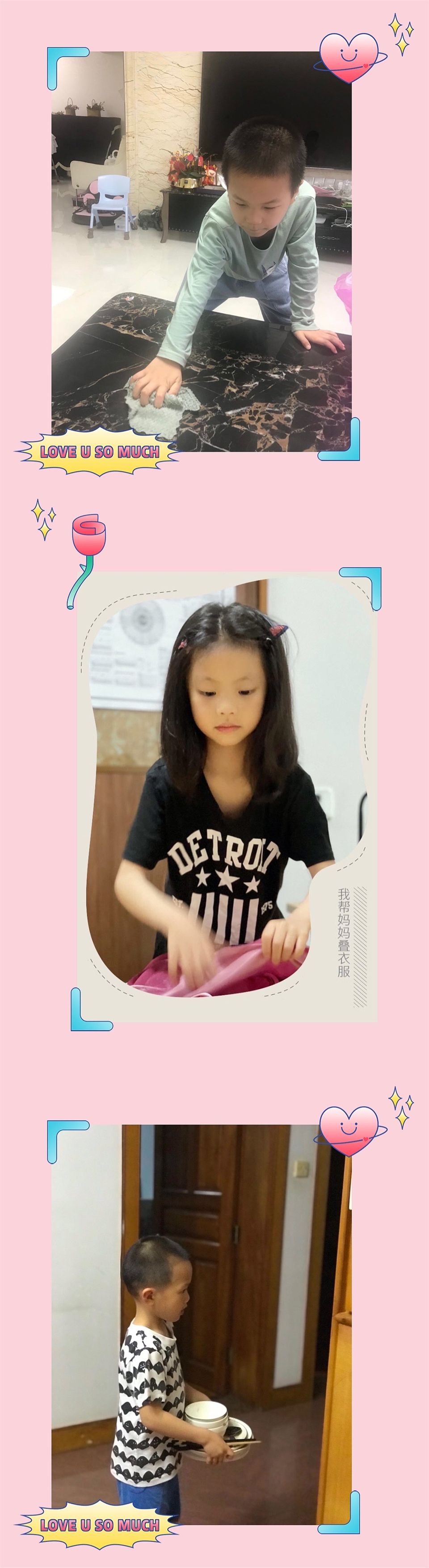 “叠衣服、擦窗户、洗地板、收碗筷,这些家务我都会做啦。”