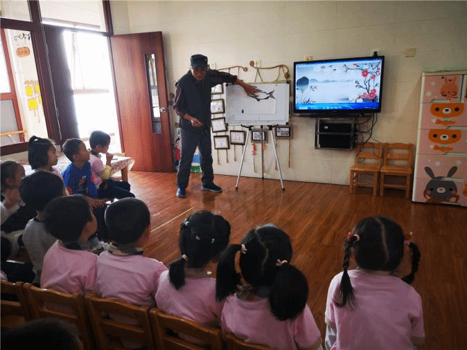 水墨画是我国悠久的历史文化瑰宝,它那简单、概括性的表现形式非常符合幼儿的思维特点,有利于幼儿大胆挥洒、毫无顾忌地作画,这对幼儿创造力的发展有着很大的促进作用。《纲要》中指出:“家庭是幼儿园重要的合作伙伴。应本着尊重、平等、合作的原则,争取家长的理解、支持和主动参与。”我们充分发班家长资源,邀请家长走进课堂,拉近了老师、孩子、家长心灵的距离。我们真切的体会到:在幼儿园的教育工作中“高校的家长助教”是一种非常好的家园共育方式,我们的家长有热情且有能力参与幼儿园的教育活动。我们充分挖掘与利用高校家长这个丰富的教育资源,扩展幼儿传统文化的教育内容和学习经验。