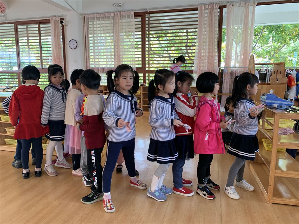开始售票啦!一群小粉迷们被曼曼小朋友的广告吸引力,迫不急待地排队买票。