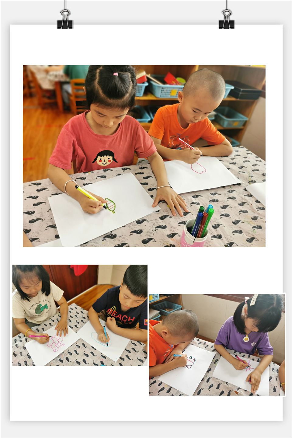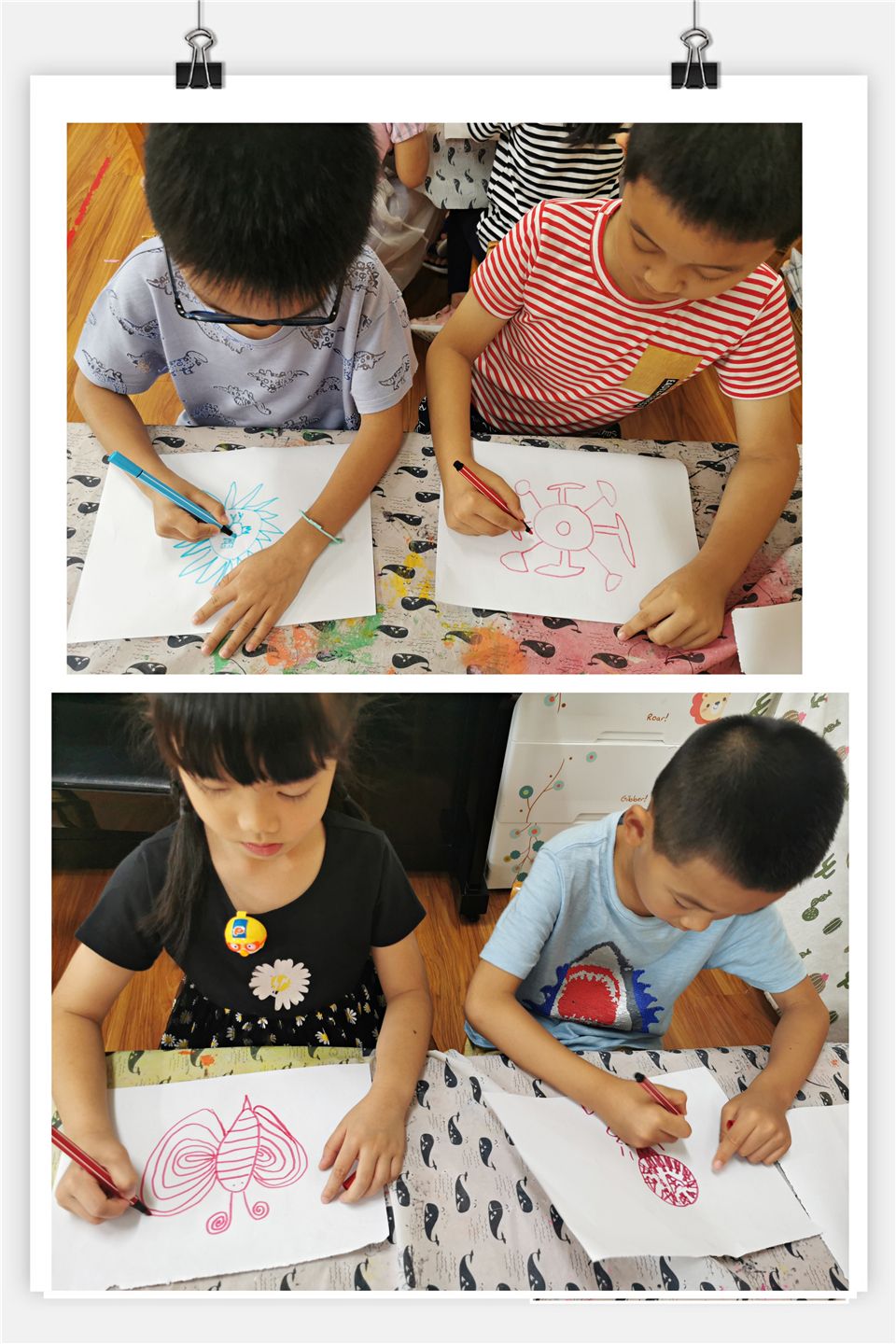 了解完陀螺的历史以及陀螺的秘密后,孩子们对陀螺的兴致越发浓厚,阳阳说:“如果有一个属于自己的陀螺就好了”依依说:“对,属于自己独一无二的陀螺”朵朵说:“我们可以自己来设计呀!”于是孩子们拿起画笔,独特的陀螺设计开始了......