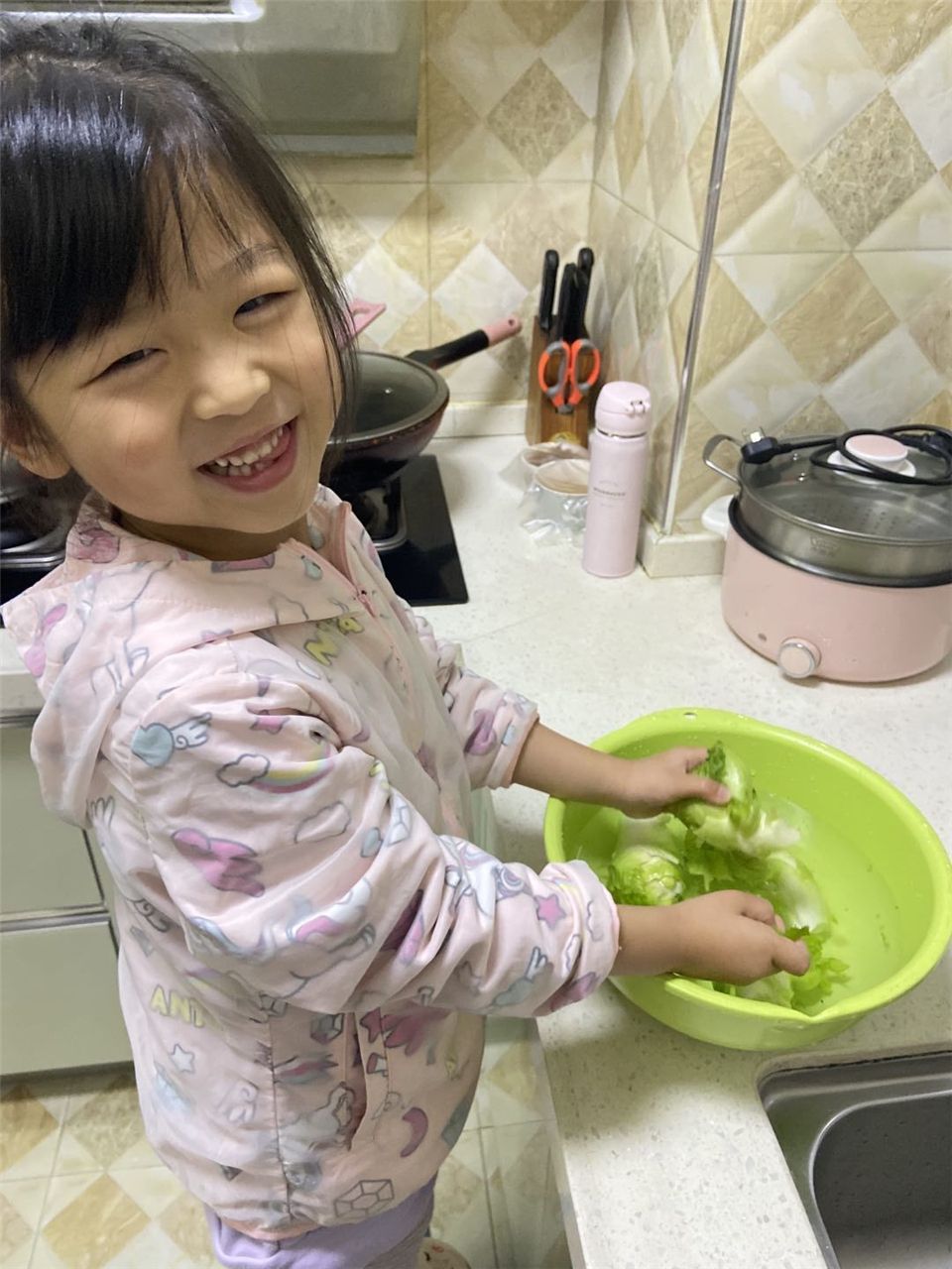 “亲爱的妈妈,奶奶、外婆平时您做家务挺累的,今天您就好好休息一下吧。”一句句感恩的话语,让节日的浪漫和爱的温暖充盈着每一个家长的心。“让我来分担一些家务活吧,别看我年纪小,我会帮奶奶、妈妈做很多事情。”不信,你们看!