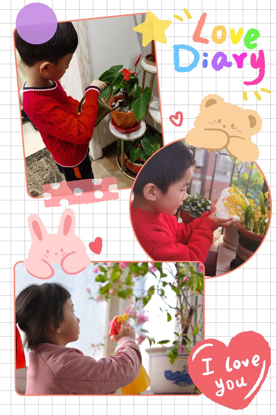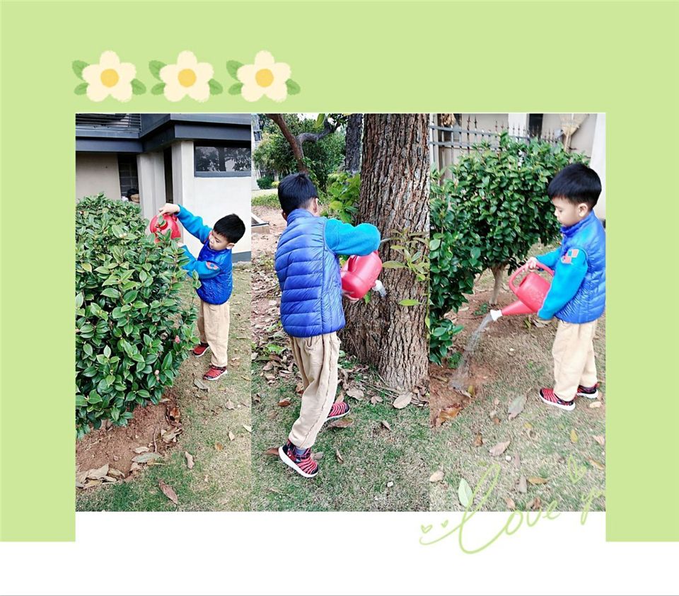 在家里,宝贝们也没闲着噢!纷纷动手给身边的植物松土、浇水。