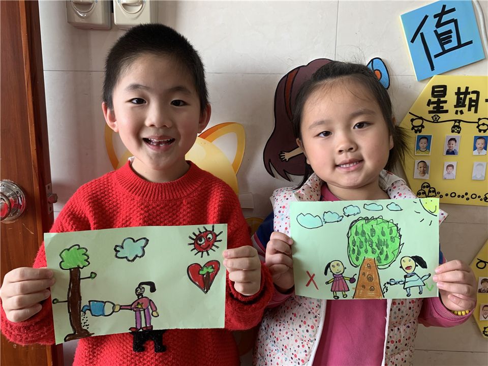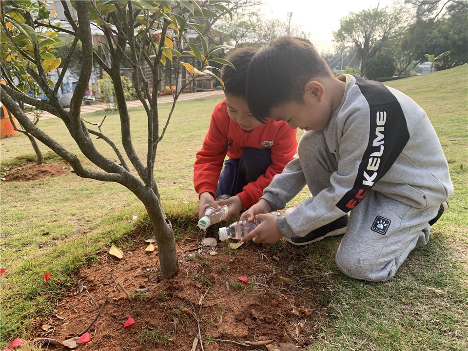 宝贝们用充满爱心和责任心的行动表达着他们对花草树木的爱护和祝福。