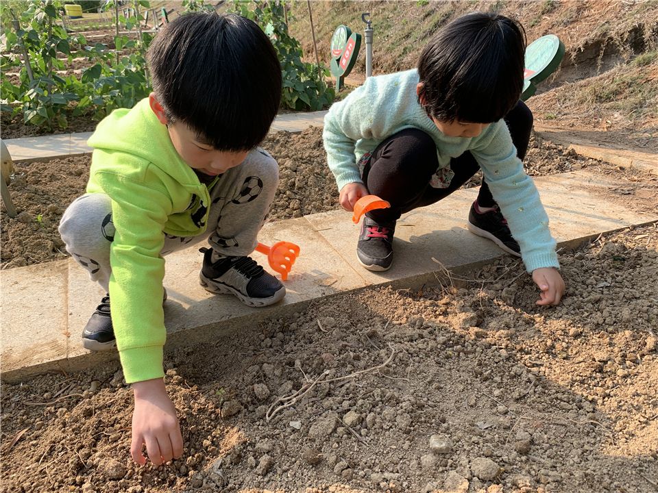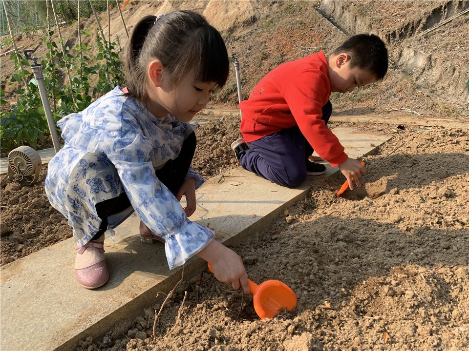 种植前要先松松土,“嘿咻嘿咻”宝贝们可真卖力!