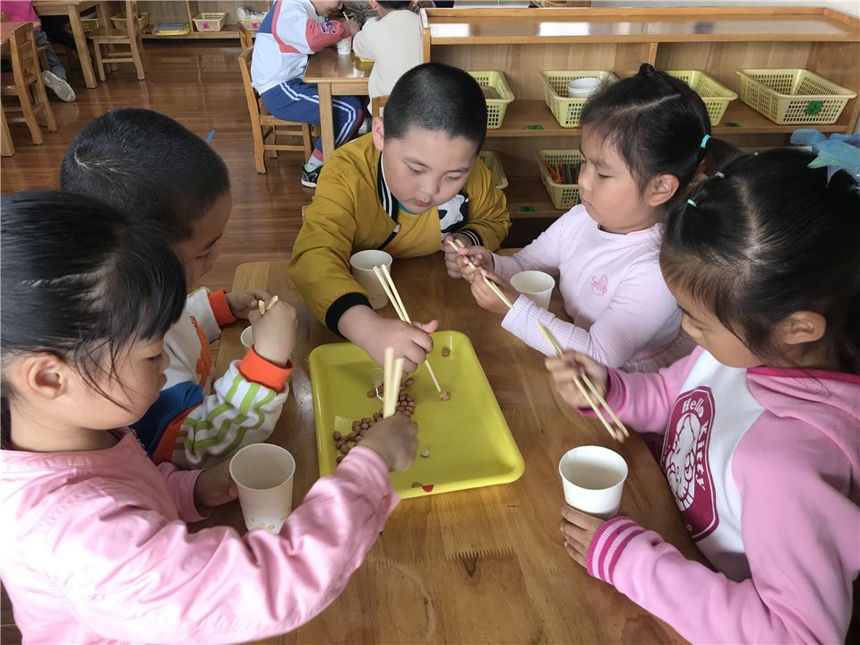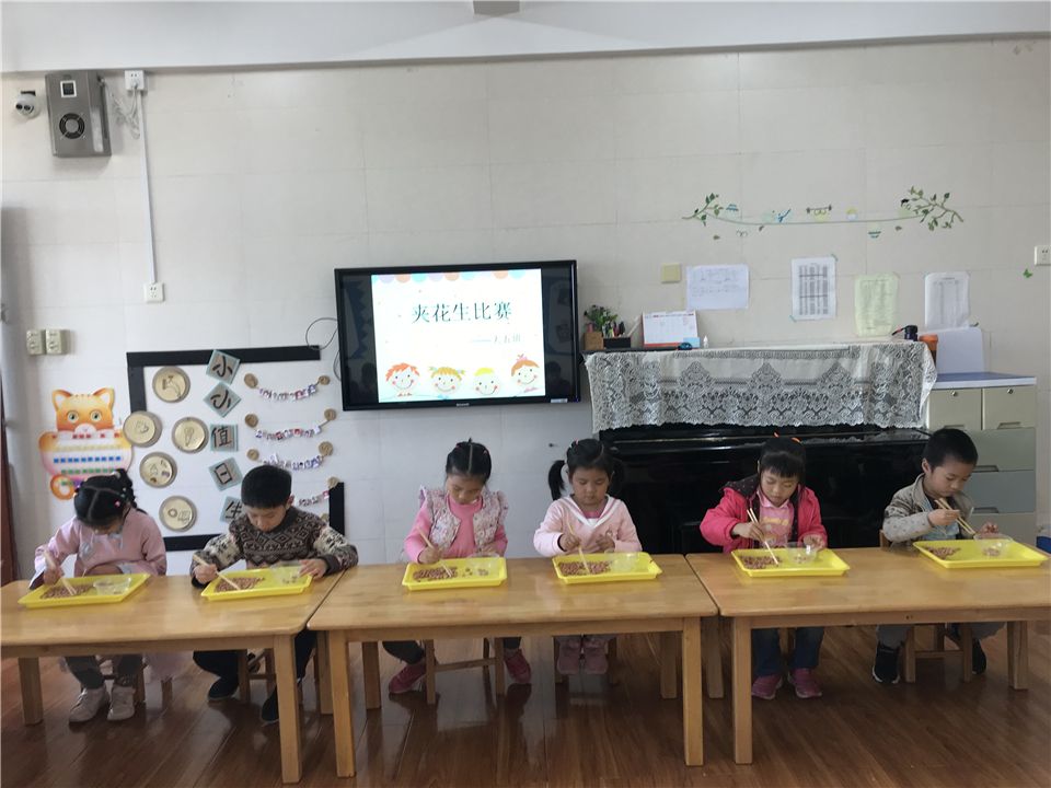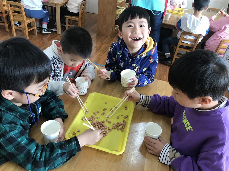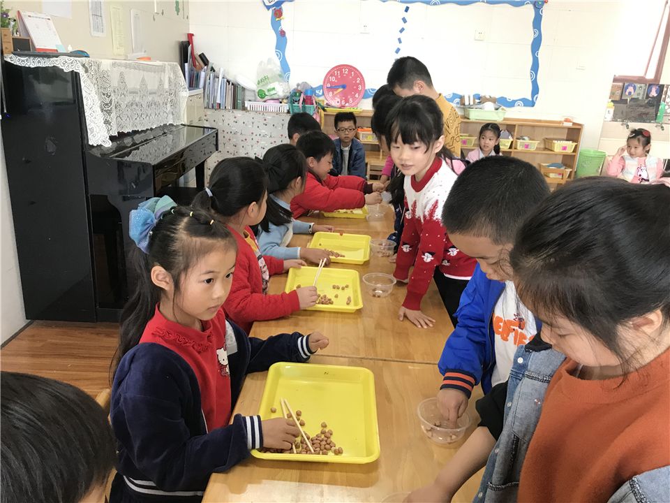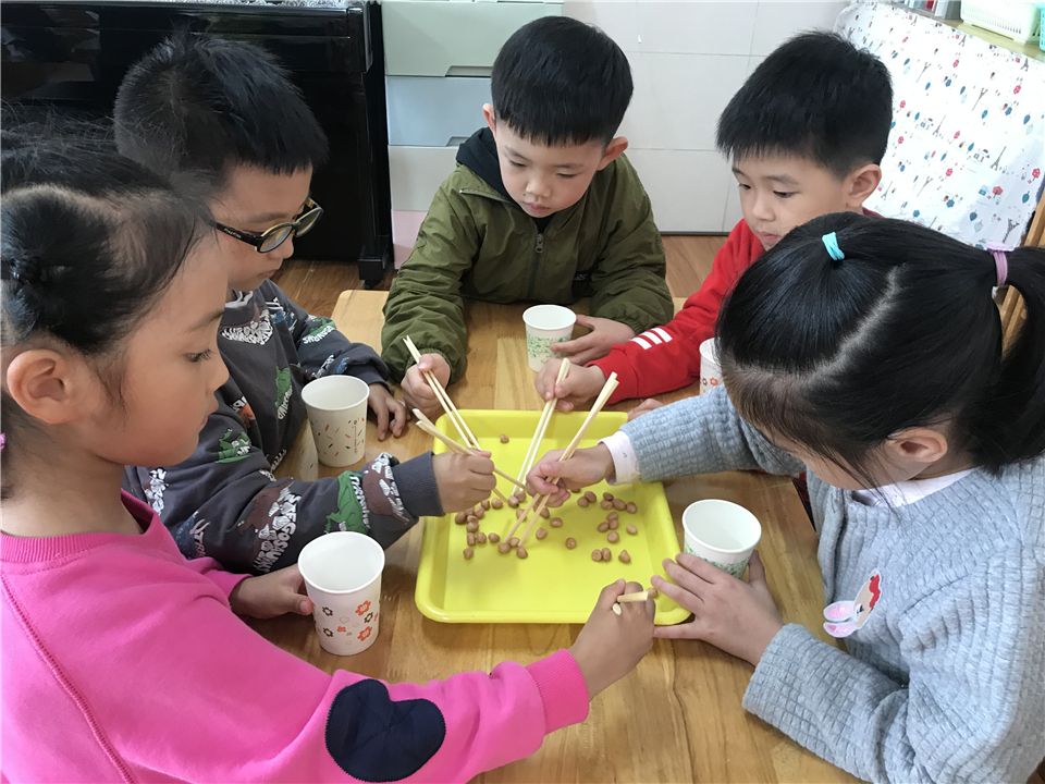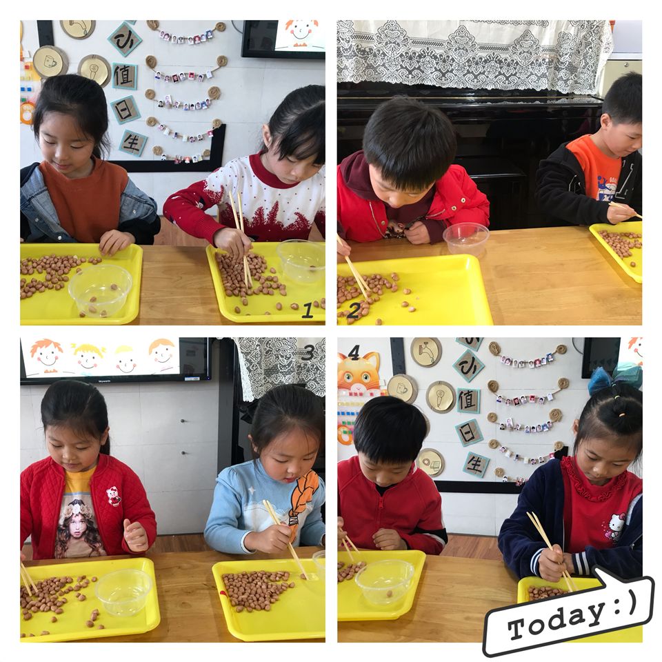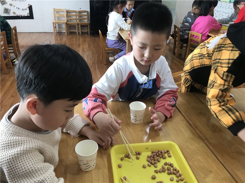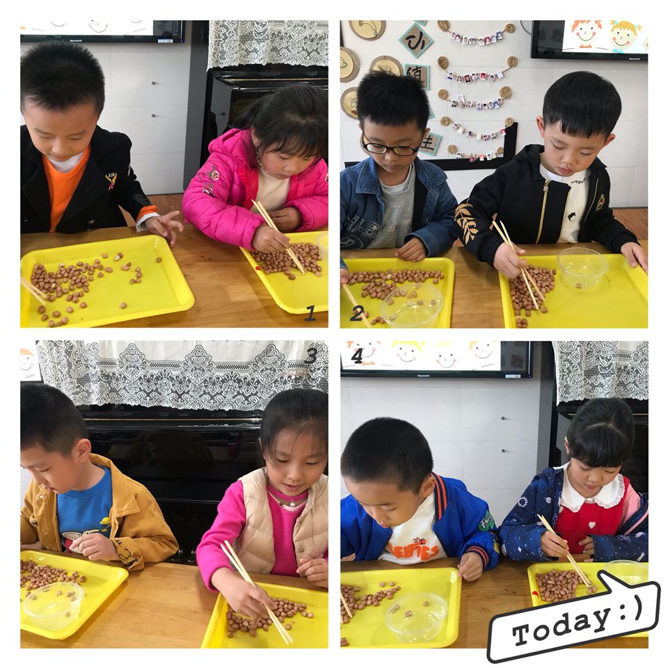 经过一段时间的练习,孩子们期待已久的“用筷子夹花生”比赛终于要开始啦!