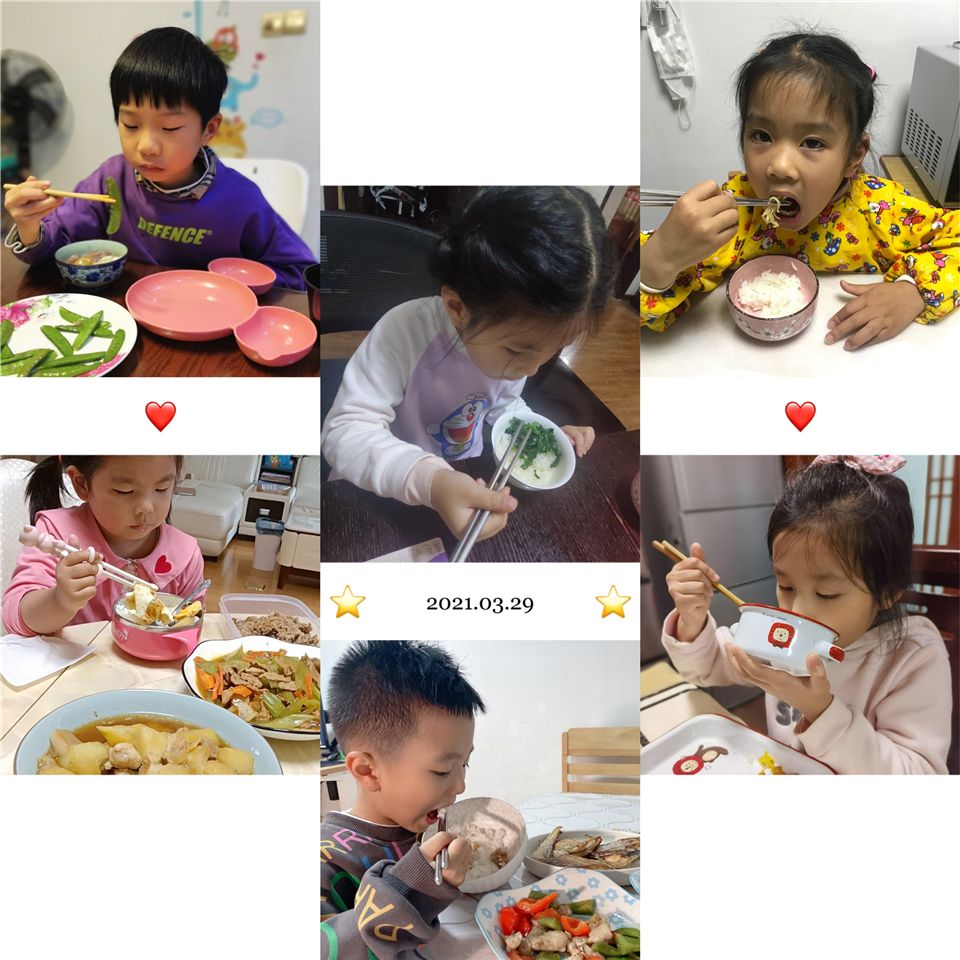 为了让孩子们更快的熟练使用筷子,爸爸妈妈们也在家对孩子们进行耐心指导,并坚持让孩子们每天在家也用筷子进餐。