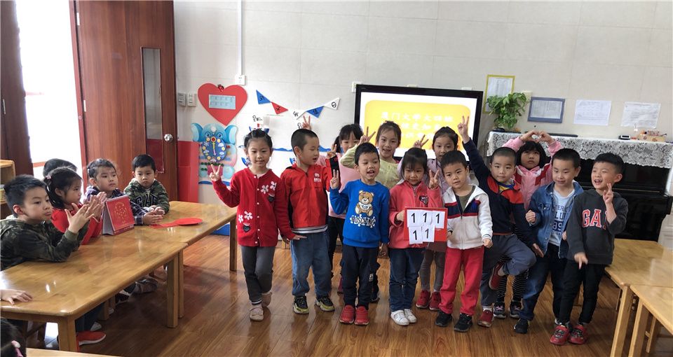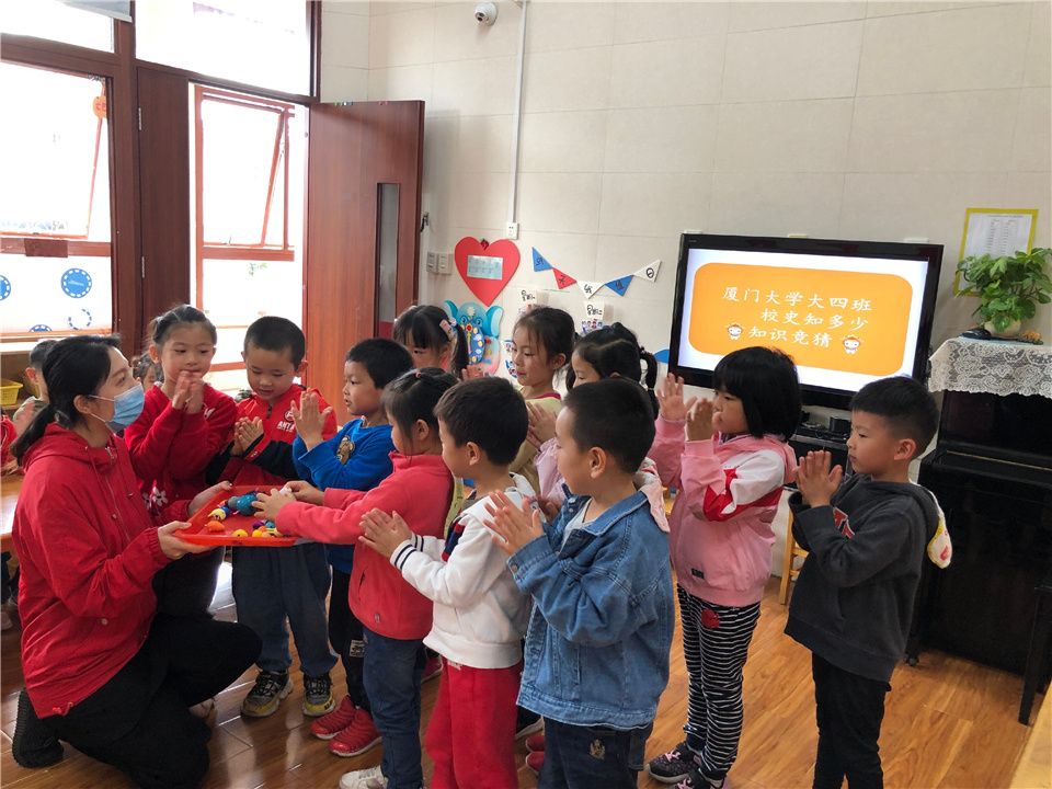 瞧!一只只高举抢答的小手,一句句洪亮的回答,都是孩子们用自己的方式在了解厦大妈妈,祝福厦大妈妈。