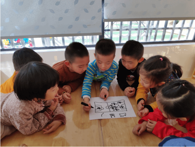 得知孩子们想踢一场“正规”的足球比赛。老师们不断鼓励、启发、引导孩子们思考。孩子们积极提出自己的想法,不断与人交流,逐步学会与人沟通的技巧。起队名遇到不同意见时鼓励他们运用自己的方式解决问题。分配位置时孩子们自己分工,承担责任。活动过程中,在选队长、起队名后,我抛出问题继续引发孩子们的思考,从而推进活动发展进程。在活动中,教师以幼儿为主体,当活动遇到困难时教师及时提供帮助,在游戏顺利开展时及时退出,给与孩子们自由的空间。