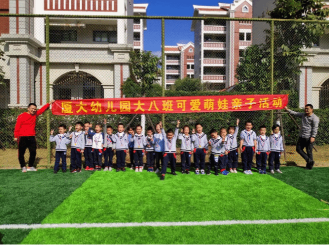 厦门大学运动场是一个充满青春与活力的地方,放学后总能看见孩子们在运动场上嬉戏的身影,特别是足球场上激烈的比赛更是吸引了大八班的孩子们。一天户外活动时,睿骞对宽浡说:“我们一起来踢足球吧!”在一旁游戏的孩子们也纷纷加入,大家兴致勃勃地踢起了足球。