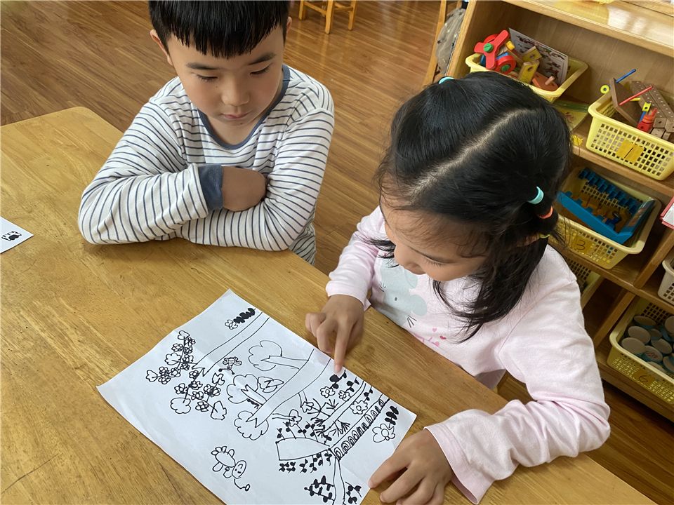 通过看看、画画、讲讲、编编,孩子们再次感受到了春天的美丽。通过老师的讲述,不仅理解《春天的色彩》散文诗的内容,丰富了相关词汇,最重要的是,孩子们知道了原来春天是五颜六色、丰富多彩的。