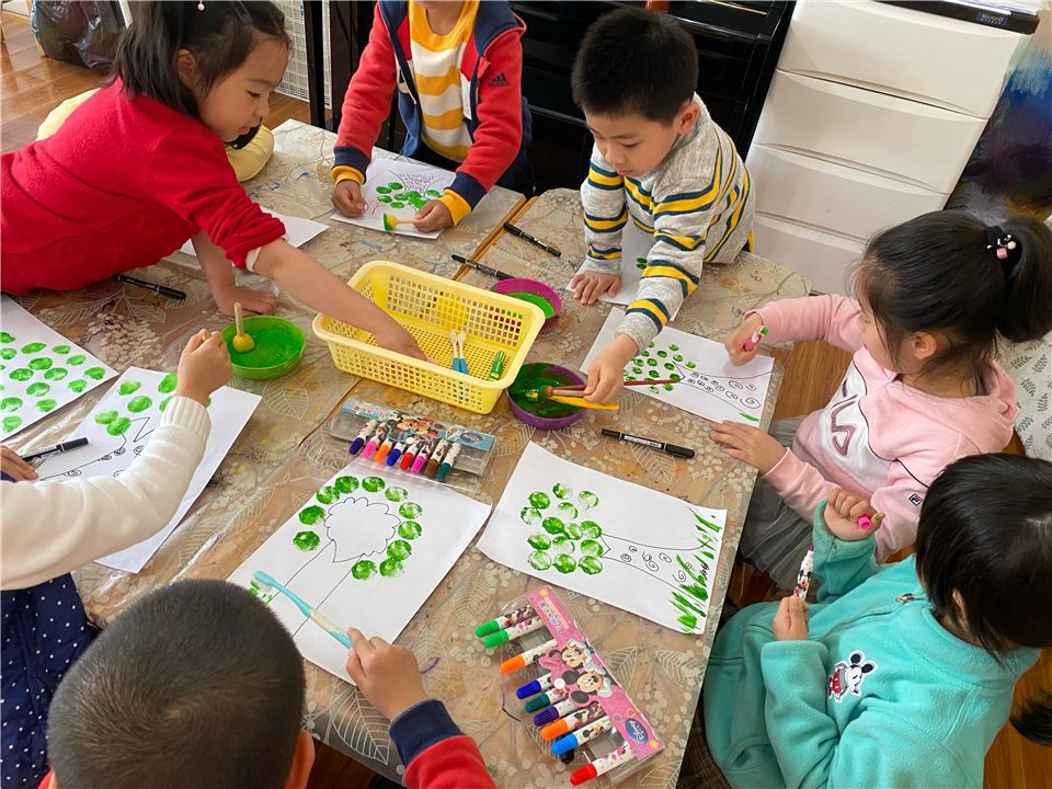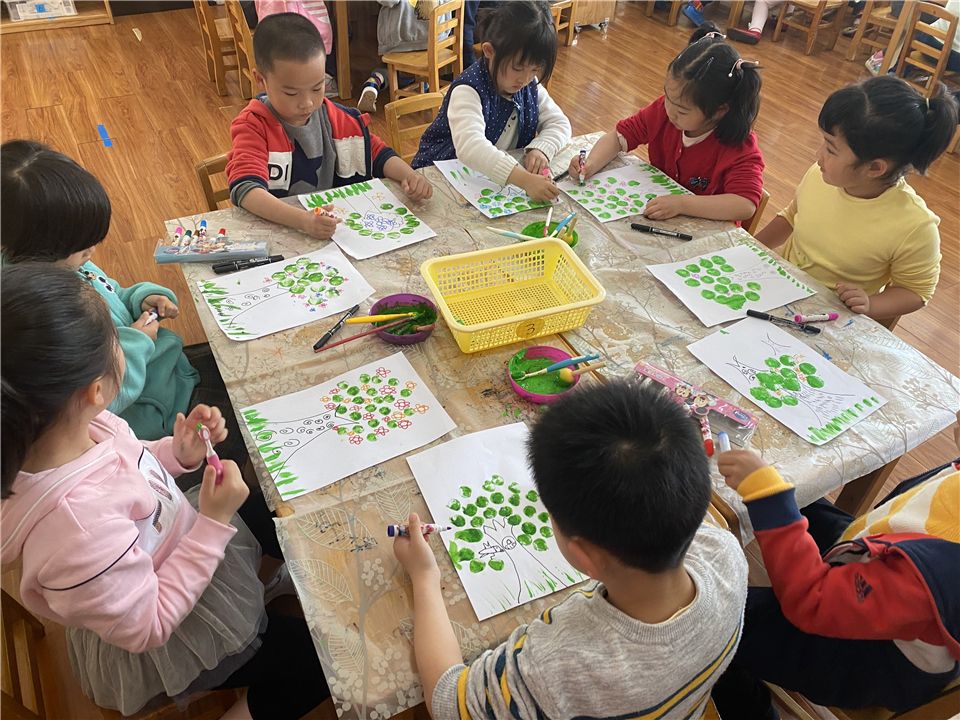通过观察春天的小树和盆栽,孩子们充分发挥想象力和创造力,以剪、贴、画等多种方式,制作了《春天的树》、《创意盆栽》等作品。