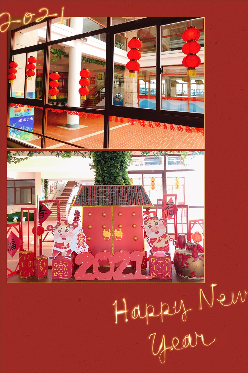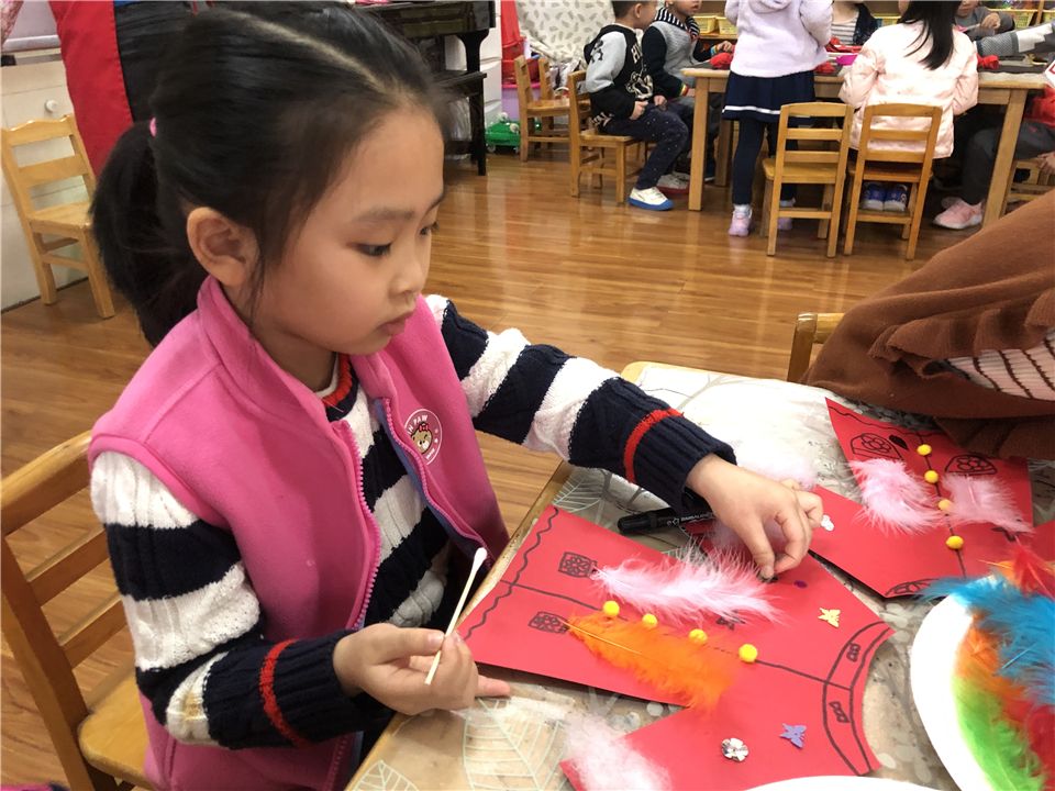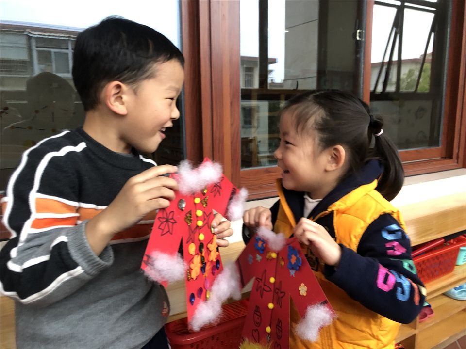 伴随着幼儿园里张灯结彩、红红火火的浓厚气氛,新年的步伐悄悄走进啦!春节是中国的传统节日,更是萌娃们最最喜欢的节日,在这样喜庆的节日里,萌娃们畅想着穿上大红的新衣服、拿着大大的冰糖葫芦、放着鞭炮,一副喜庆欢乐的景象……