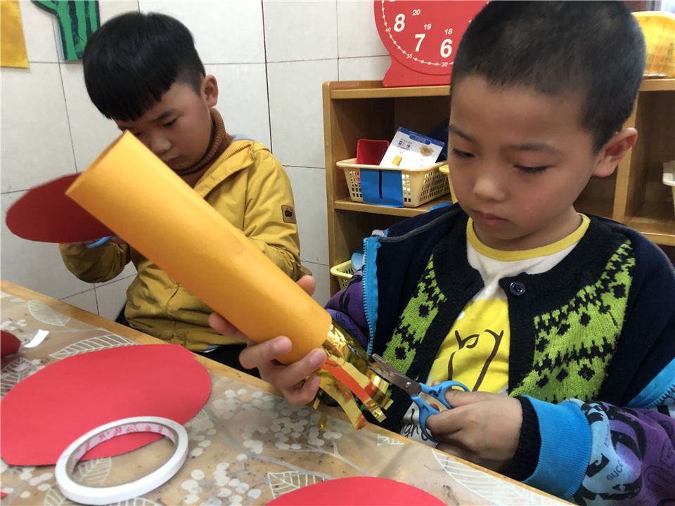 大红灯笼高高挂,欢欢喜喜过大年。每当挂起挂起红红的灯笼,也意味着辞旧迎新的新年就要来啦。萌娃们也迫不及待地利用美工区的材料制作起了属于他们的大红灯笼。