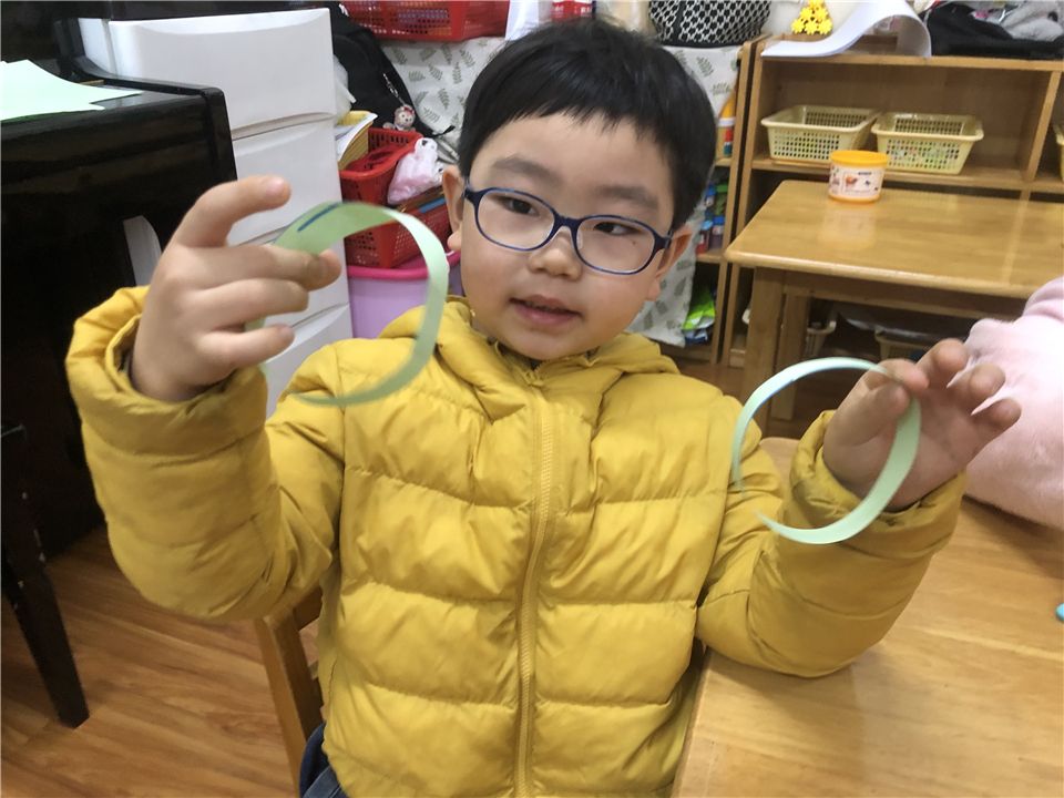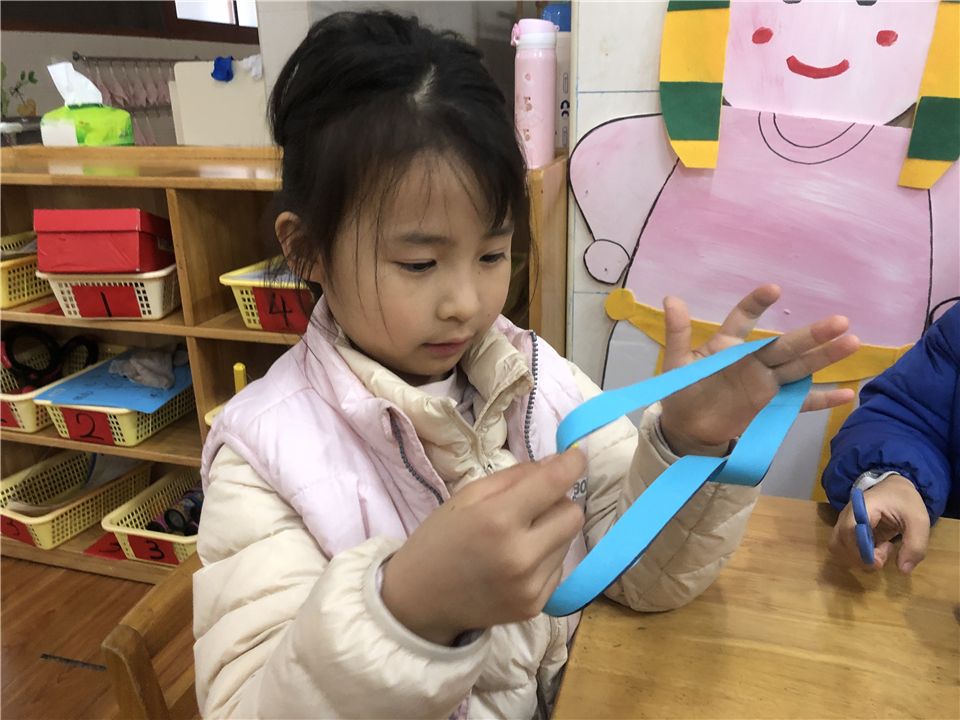 “我剪好啦!可是怎么变成了一个圈圈啦?”