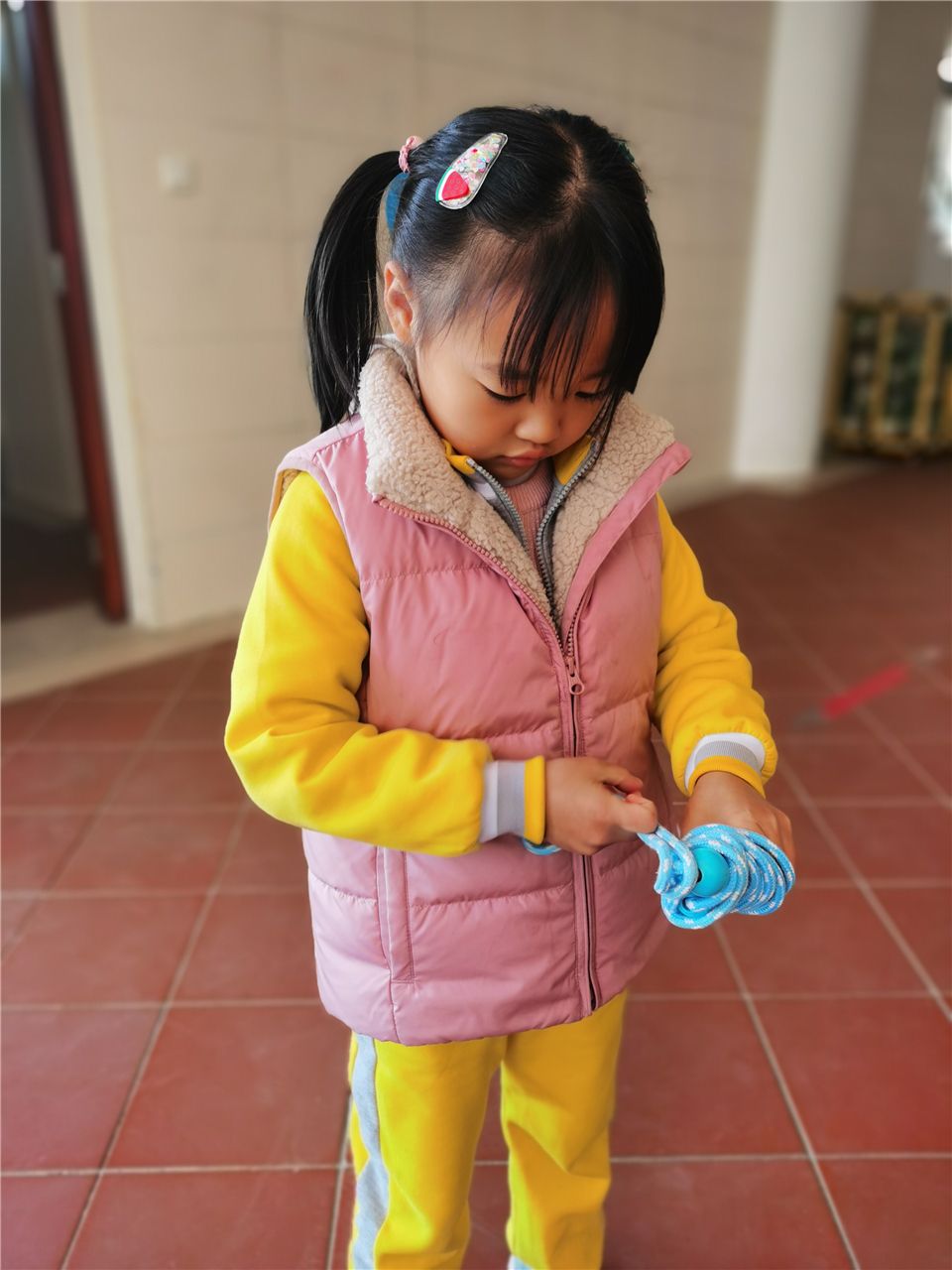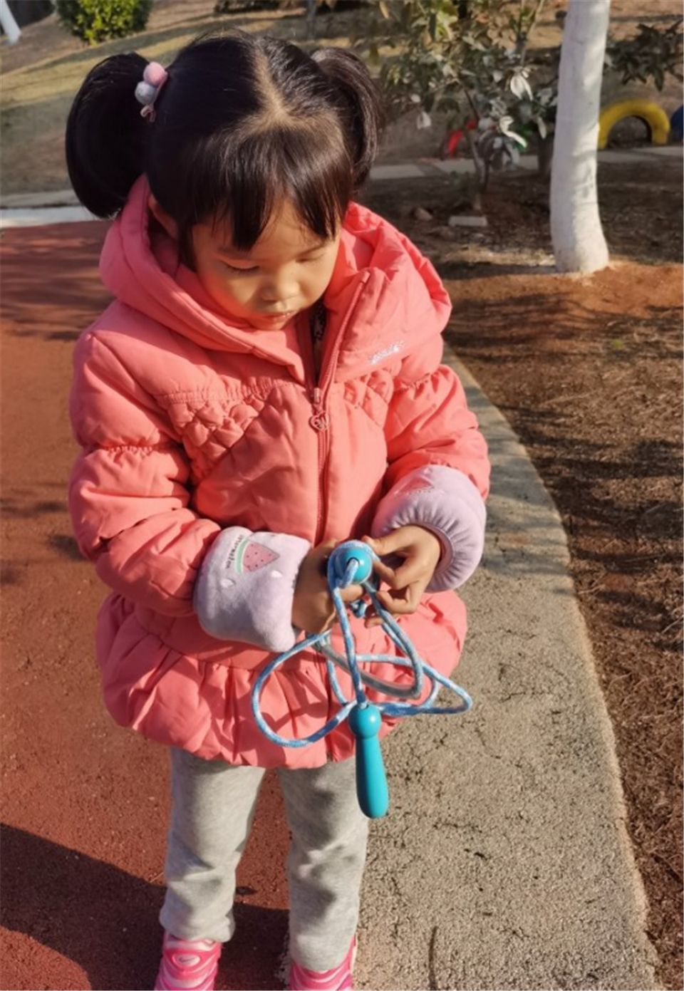 听了跳绳有这么多好处,孩子们早就跃跃欲试了,想着不就是跳绳嘛,简单!可是刚拿到绳子时,绳子就团成一团打结了,怎么也解不开,孩子们可犯愁了。看来不能小看这小小的一根绳子,想要跳好,还真不容易哦!要学会了绕绳子与解绳子之后,绳子才会乖乖地听你的话。