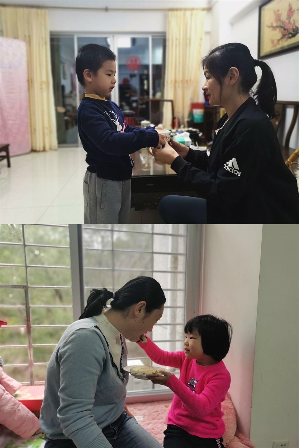 活动结束后,宝贝们还不忘带着“小任务”回家了。你们瞧,有的给妈妈接水洗脚,有的帮奶奶、外婆洗碗、扫地、捶捶背,还有的亲手给妈妈制作蛋糕,喂给妈妈吃……相信这一幕幕小举动会让妈妈们看在眼里,甜在心尖。