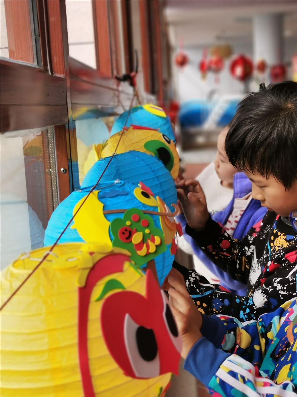 孩子迫不及待的把自己的灯笼挂了起来,将春节的喜庆气氛再次延续到班级,看着这些精心打造设计、又剪又贴的花灯,每个小朋友脸上都洋溢着过节的喜庆。
