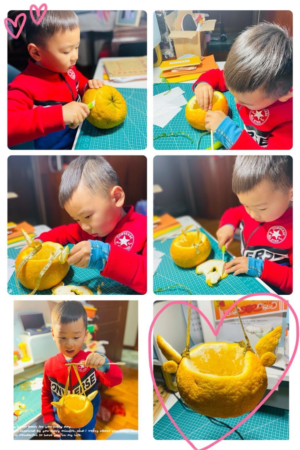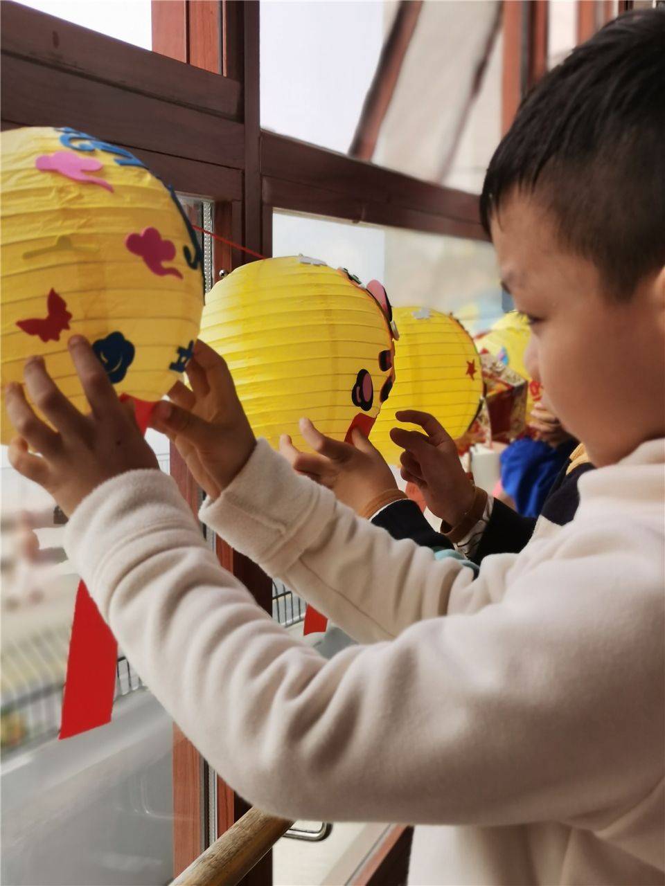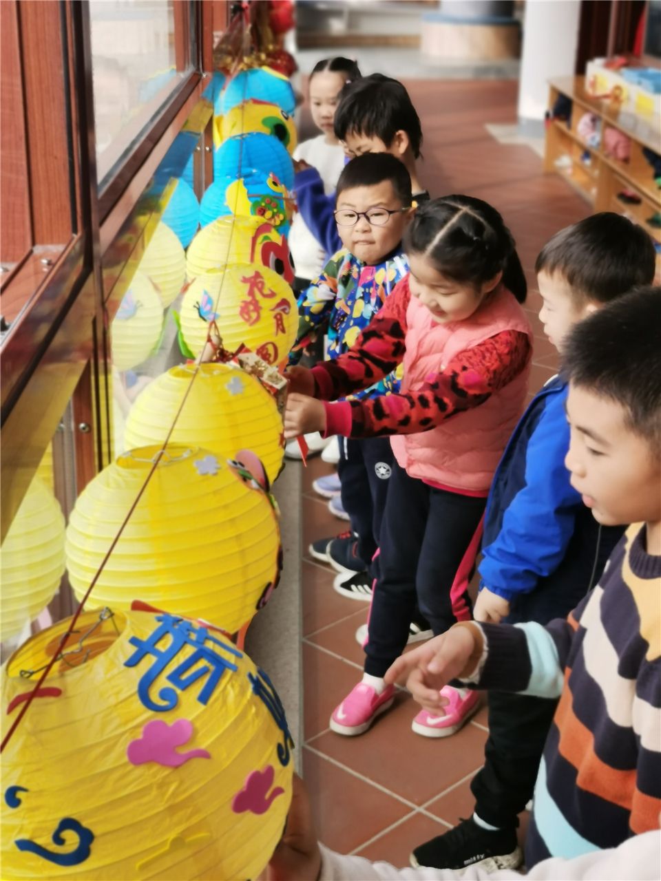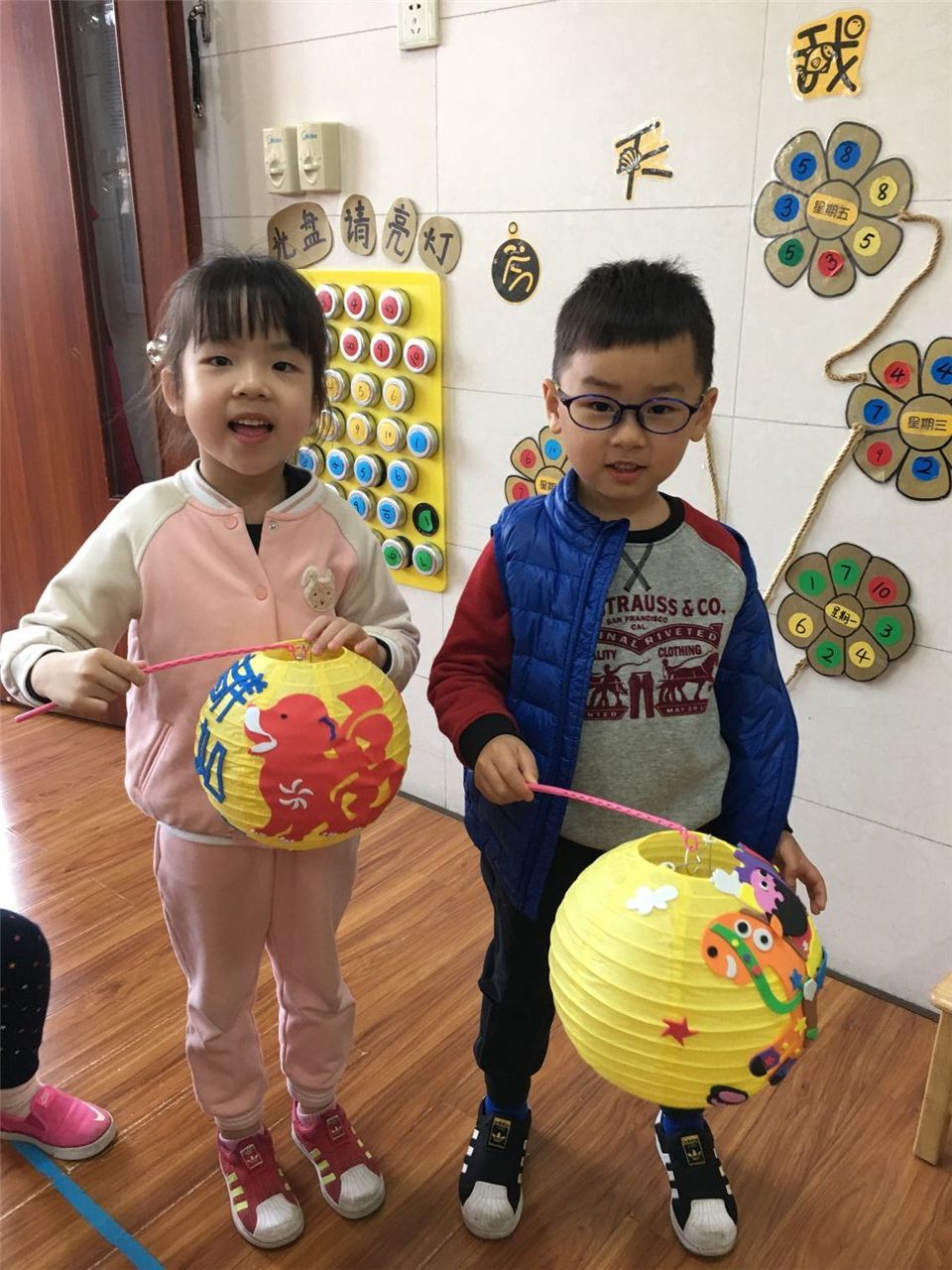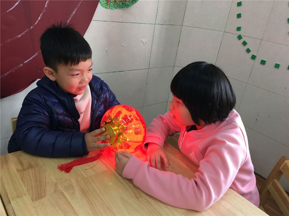 孩子们还带来了假期在家和爸爸妈妈一起自制的元宵灯笼,大家围在一起聊了起来,“我的花灯会一闪一闪的呢。”“老师,我告诉你哦,我的花灯还会唱歌呢。”“我的花灯是和爸爸一起用桔柚做的。”“你们看,靖涵的花灯是用春节收到的红包袋做的哦,真棒!”