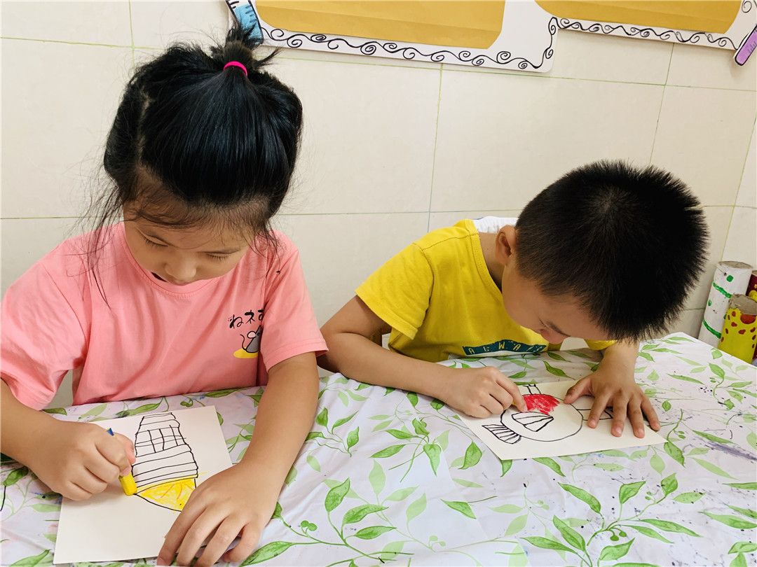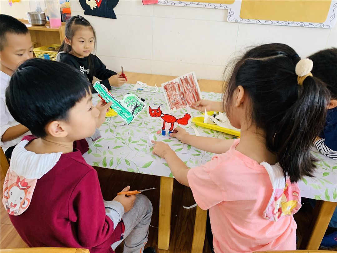 经过大家的讨论,最后决定将故事角色母鸡萝丝和狐狸,还有故事场景画出来。说做就做,大家一起分工合作。