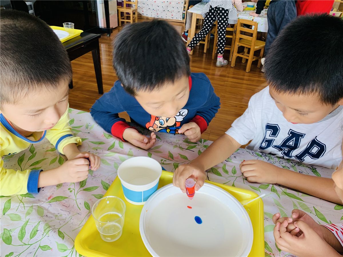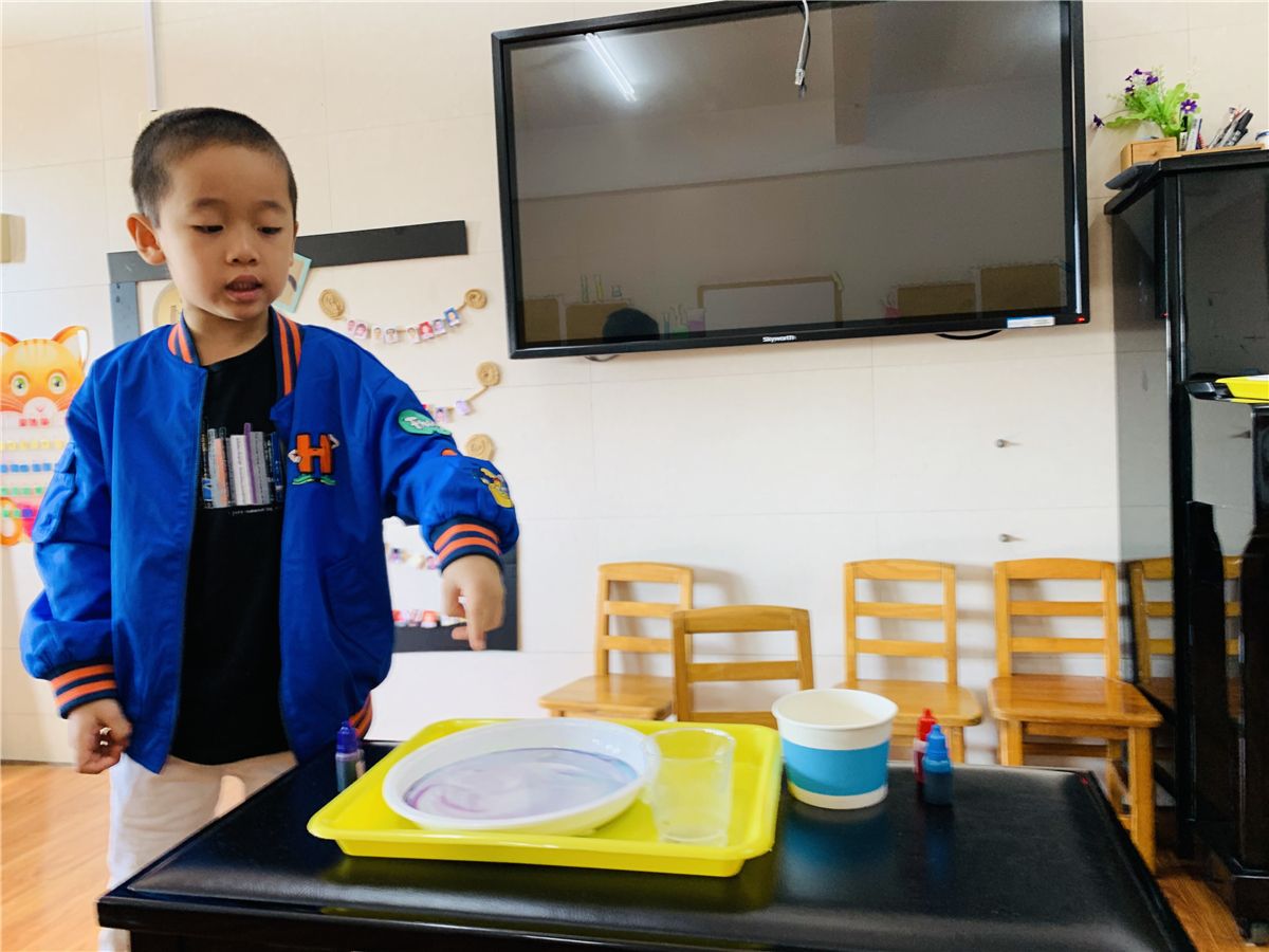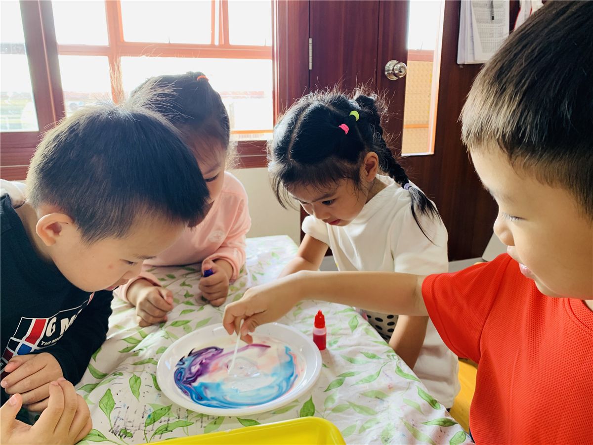 孩子们拿着棉签,蘸一蘸,在牛奶里随意搅动,发掘出色彩组合的无限可能。