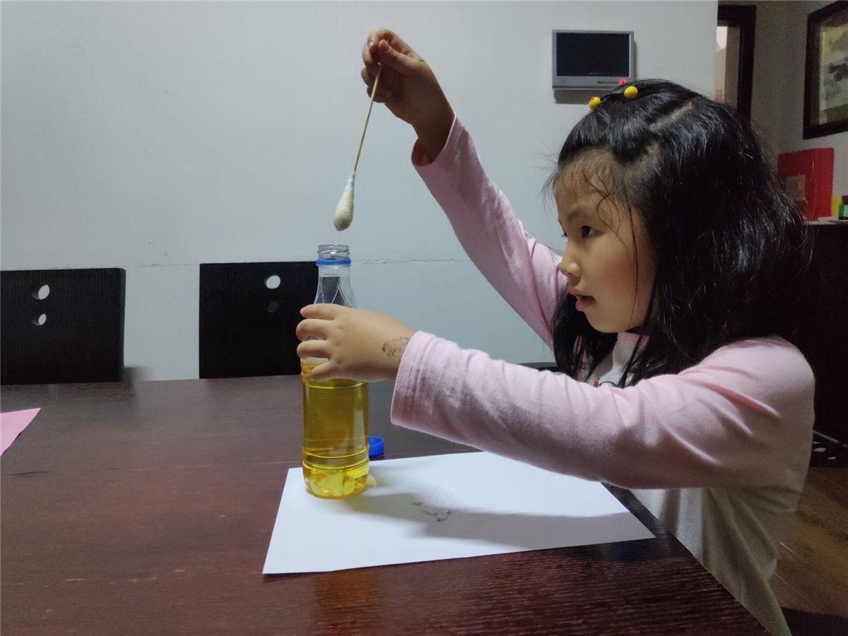 孩子们对科学实验的的热情依旧高涨。瞧!回到家中的他们,也做了许多有趣的实验哦。