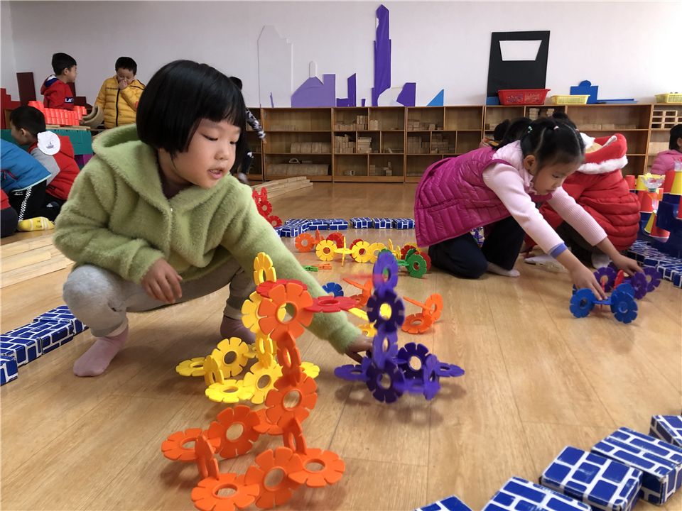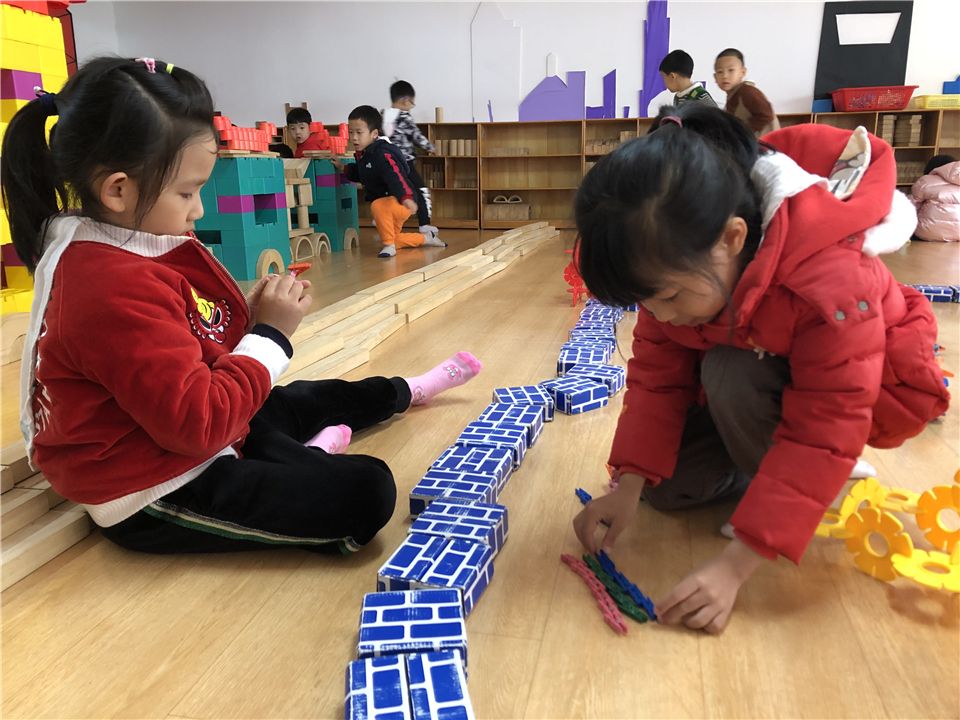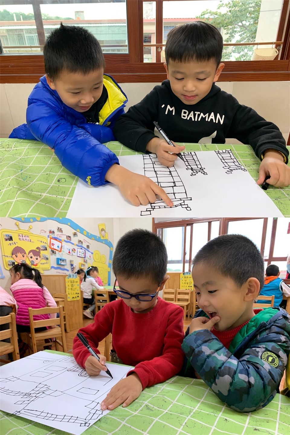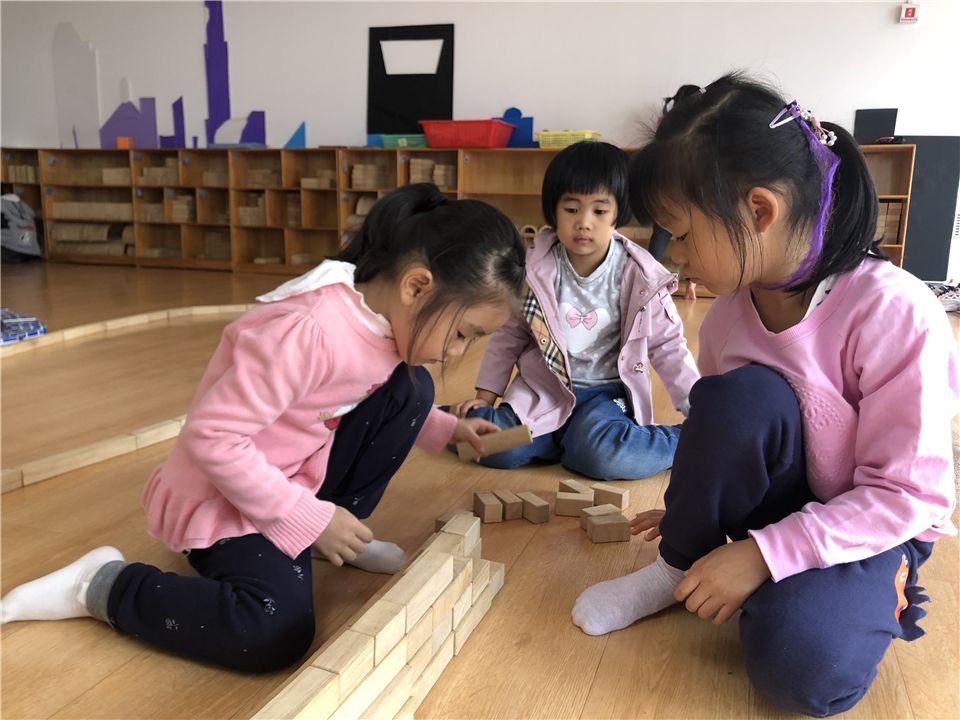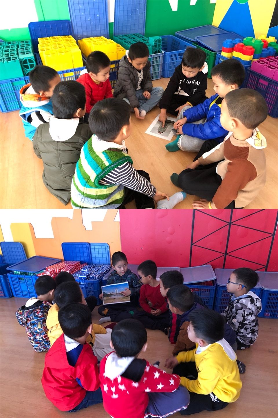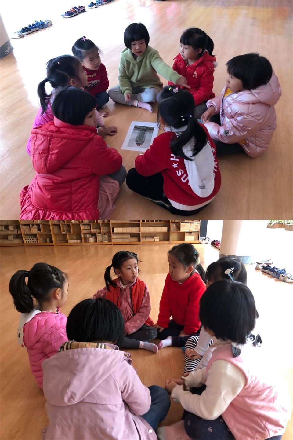 我们带着各自明确的任务出发啦!“主楼的地基要先围成一个正方形,然后才能对称,不然窗户都没办法对称的镂空出来。”“我们旁边的楼要比主楼小一点,数一数有几层再垒高,不然这种类型的材料不够啦!”“廊道要用积木把楼连接起来,不然楼与楼之间是没有办法相通的。”“诶诶诶,别忘了每栋楼都有门呀!”