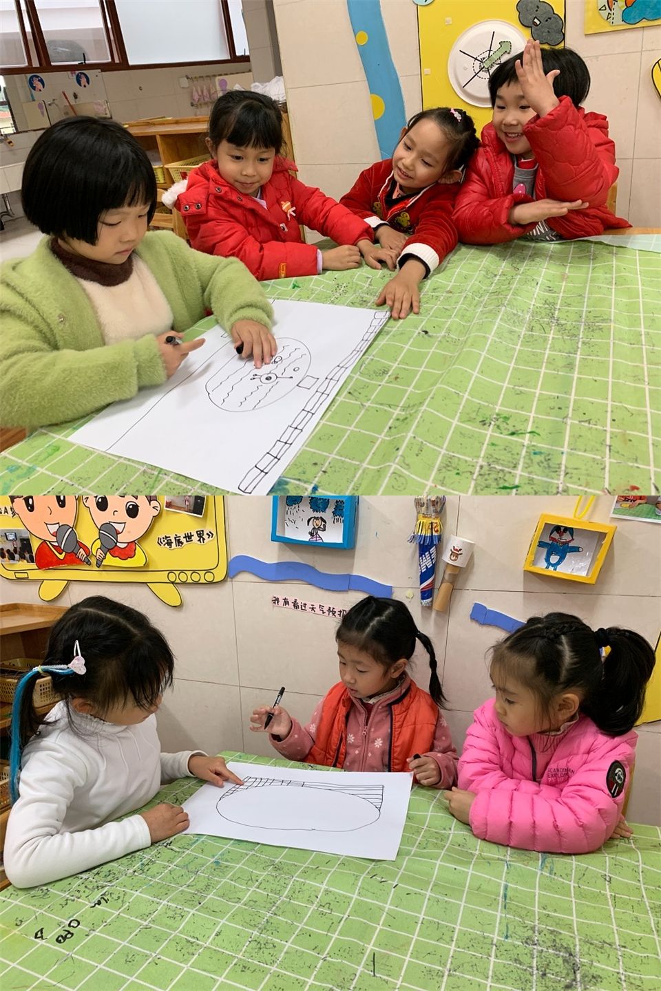 “我们用雪花片拼的天鹅和海龟还聚在一起聊天呢。”“看,我们用夹子夹的小鱼正围在一起唱歌呢!”