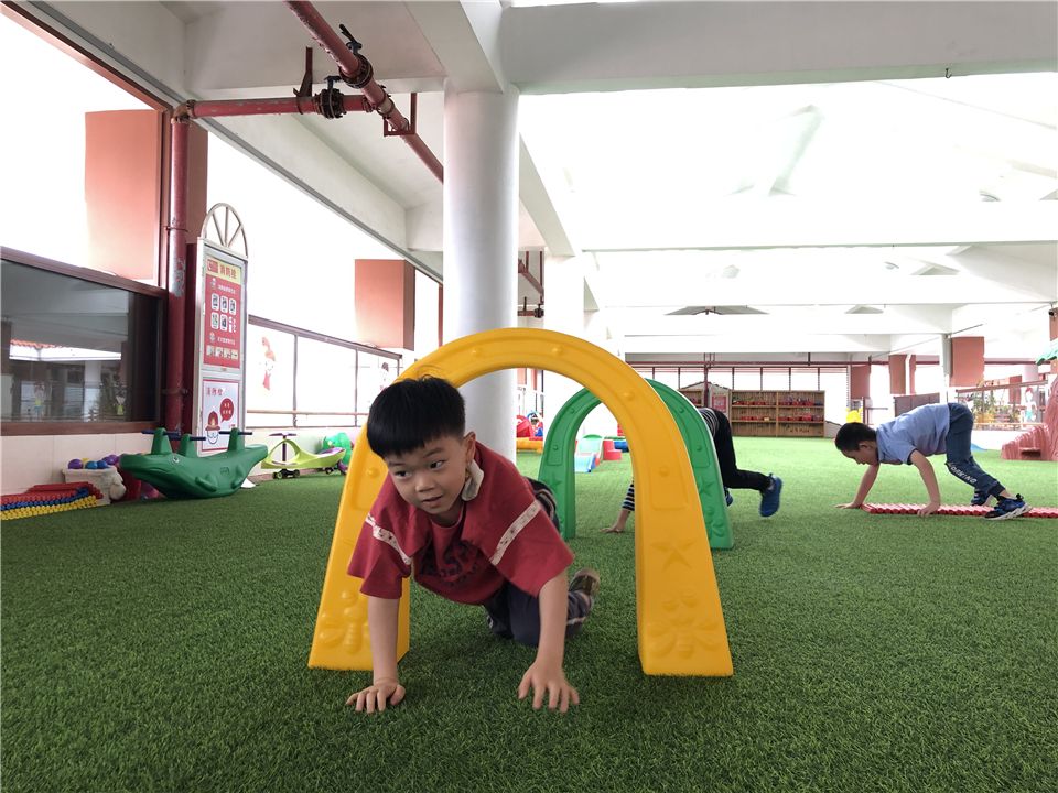 通过了第一轮的训练,宝贝们为自己的成功感到兴奋,还想挑战难度更大的项目,为了满足宝贝们的挑战欲望,难度升级啦!在山洞中放上了窄距障碍,这可难倒不少他们。宝贝们在通过时虽然频频碰到障碍,但他们绝不放弃,在一次次的尝试中,终于都顺利通过啦!为宝贝们的进步感到骄傲!
