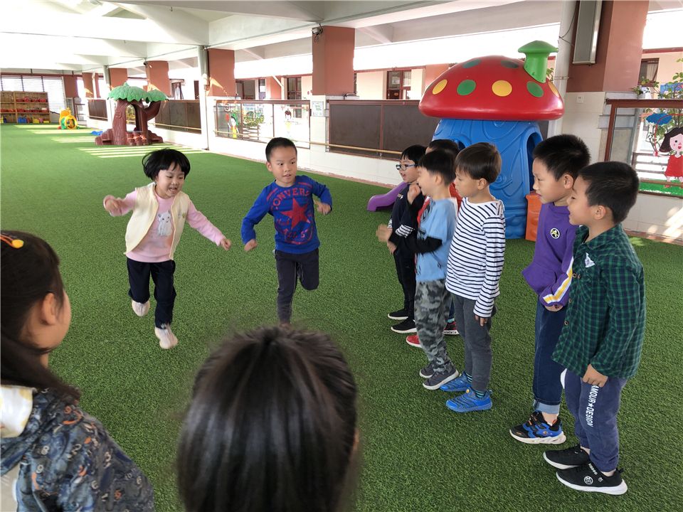 要加大难度这还不容易,我们来一场单脚跳比赛吧,看看谁能坚持得更久,坚持到最后的宝贝获胜哦!