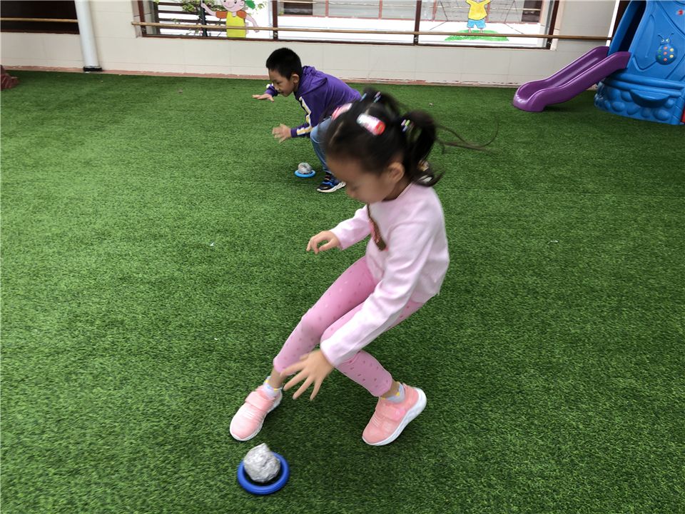 为了增加体智能课的趣味性,老师创设了移动小球的环节。在男生女生紧张的比赛氛围中,宝贝们在不断地观察同伴的动作、不断地学习更快通过的方法。
