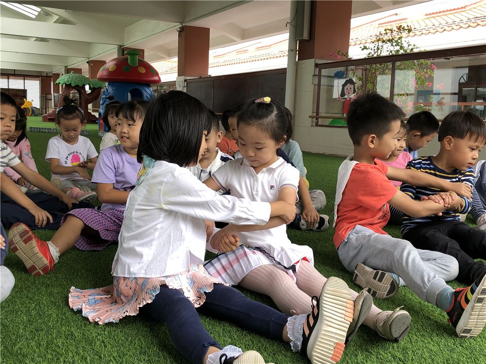 每一次的体智能课后,都不要忘记放松肌肉,还可以请小朋友们互相帮忙哦~