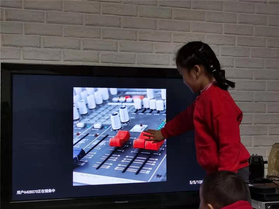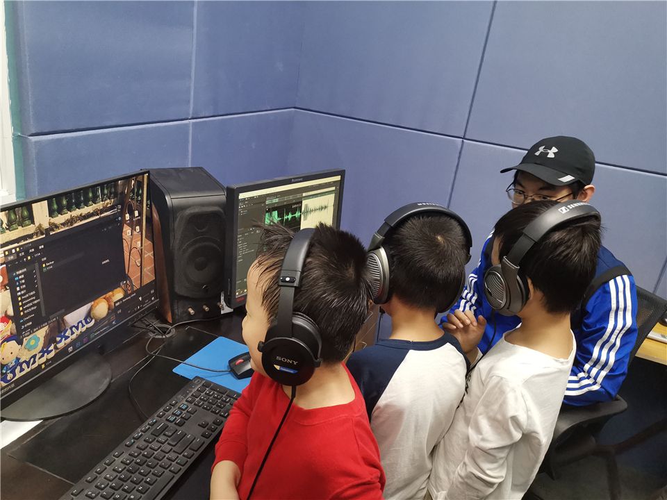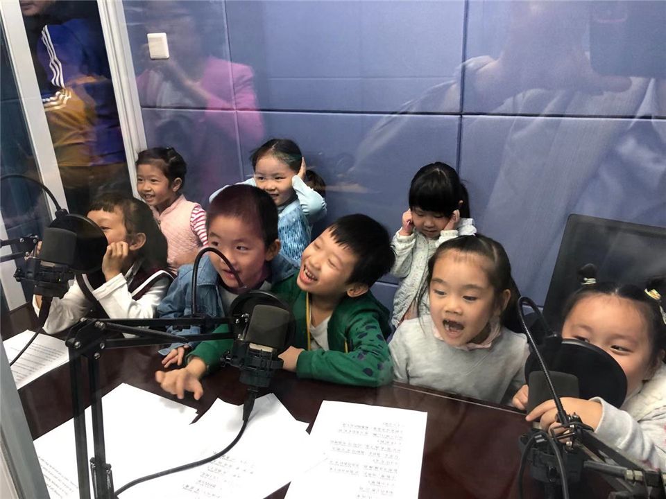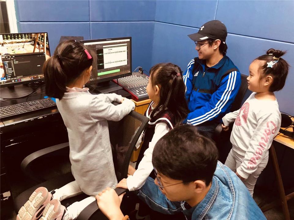 在这里,孩子们看到了录音室里的一些器械,有麦克风、调音台、耳机、电脑、监听音箱等,大家纷纷跃跃欲试。“大家好!我是今天的新闻小主播。”“大家好!接下来我为大家唱一首‘听我说谢谢你’。”“国旗国旗红红的哩,五颗金星黄黄的哩……”一首首耳熟能详的歌曲在整个录音室里回荡……从哥哥姐姐那,孩子们了解到他们平时的播报流程不止是播放歌曲。而是先去采访收集新闻资料,把它拟成一份份的稿件,通过对着麦克风录音传到电脑上,再进行调音播放到整个厦大校园的。