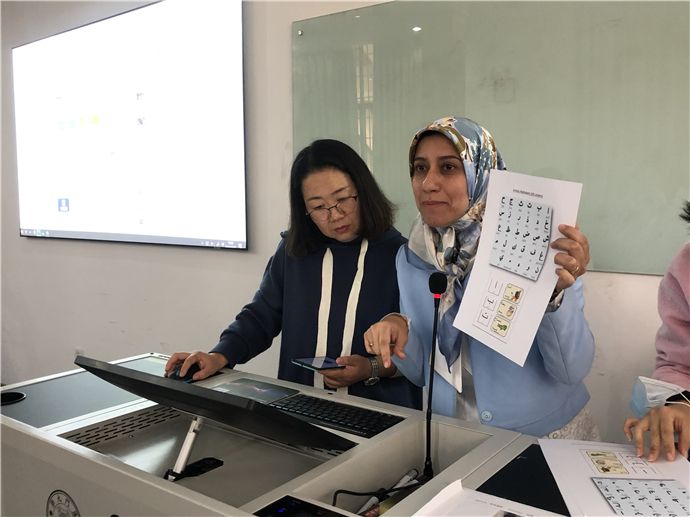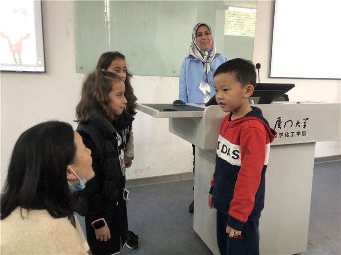 小朋友们用稚嫩的声音跟着mimi妈妈一起读着埃及的语言,虽然并不标准,但可以看到每个小朋友脸上透露出的是自信、是敢于尝试的勇气。
