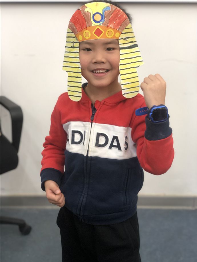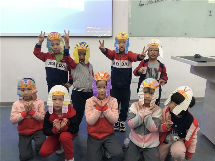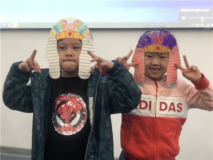 完成作品后,小朋友们都迫不及待地戴在头上进行拍照展示,别说还真有点埃及的异域风情呢!