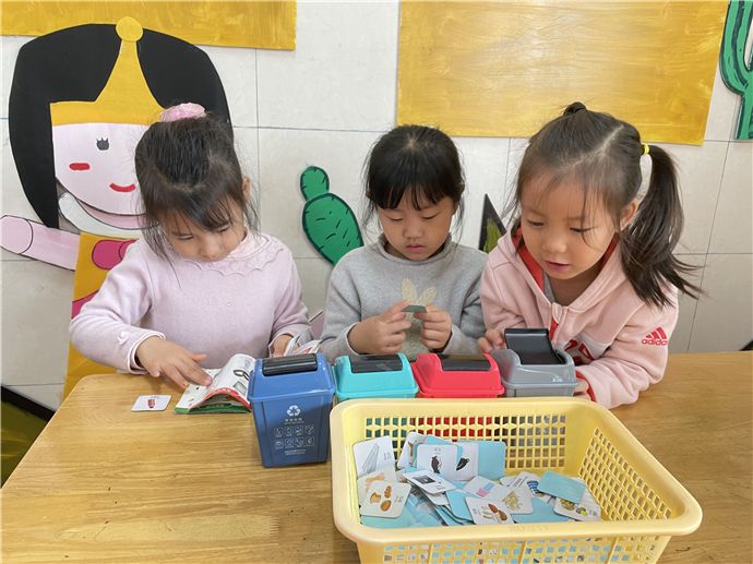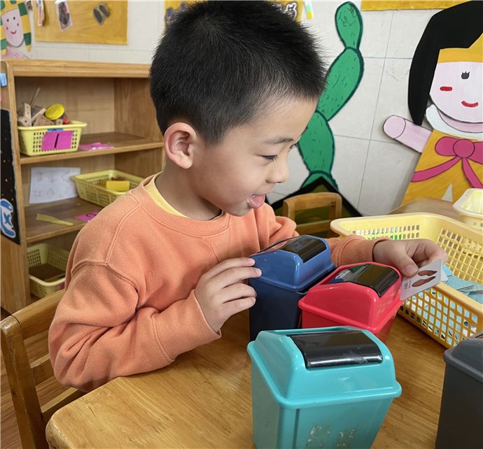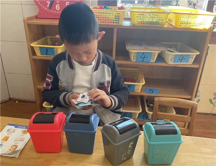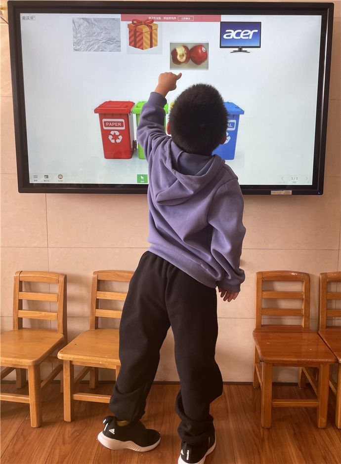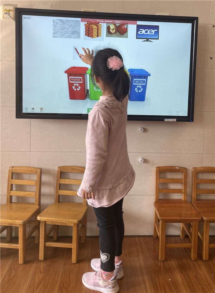 用各种形式让孩子们了解垃圾分类的好处、知识和回收处理的方法,通过白板教学的小游戏教会他们区分垃圾种类及垃圾箱,学会正确的投放各类垃圾,给孩子们幼小的心灵播种下爱护环境的种子。