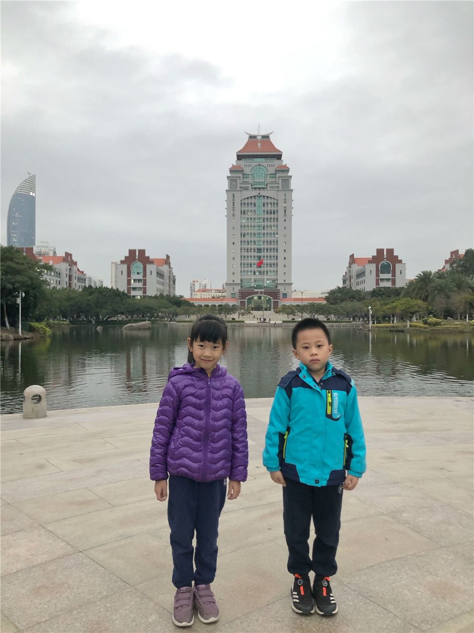 “妈妈说:一主四从的嘉庚楼就像妈妈带着四个长得一样的孩子。”