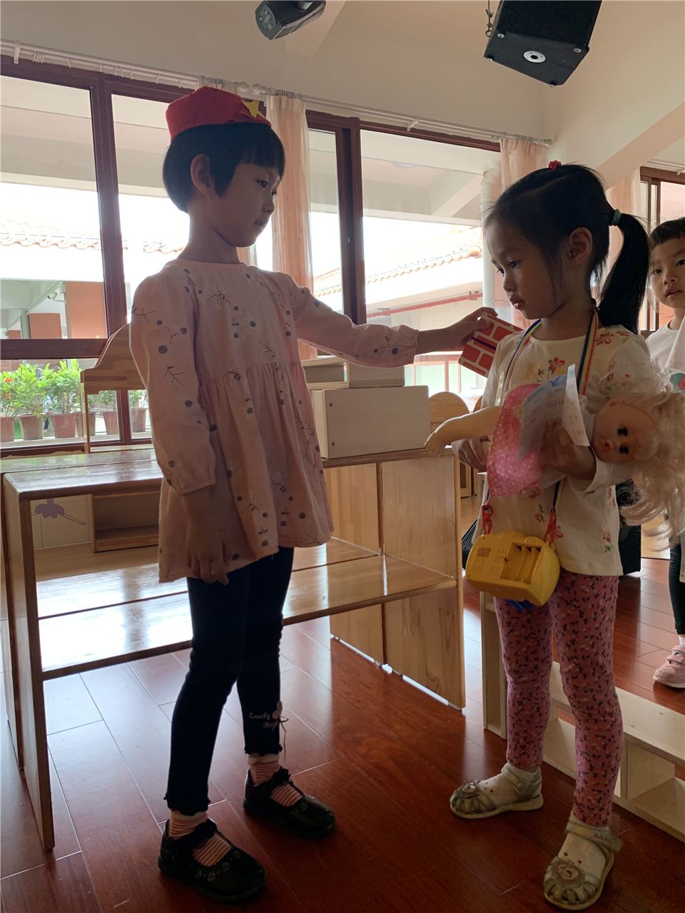 孩子们在游戏中已经有了基本的分工,角色意识在喜欢的游戏中则表现得更加明显,知道不同的角色有着各自不同的职责,在扮演的过程中努力扮演自己的角色。孩子们愿意投入游戏中,喜欢做自己扮演角色的事情。