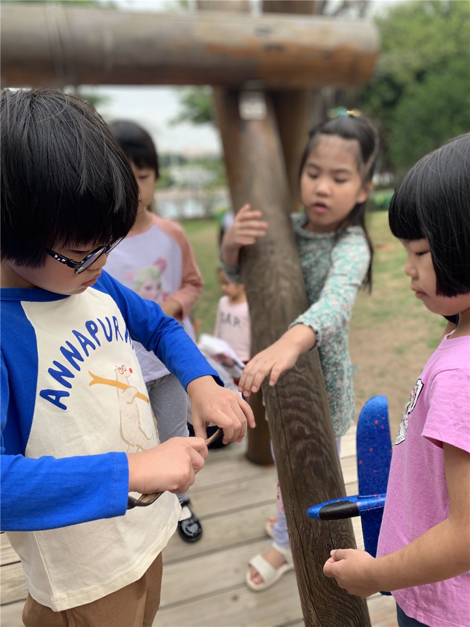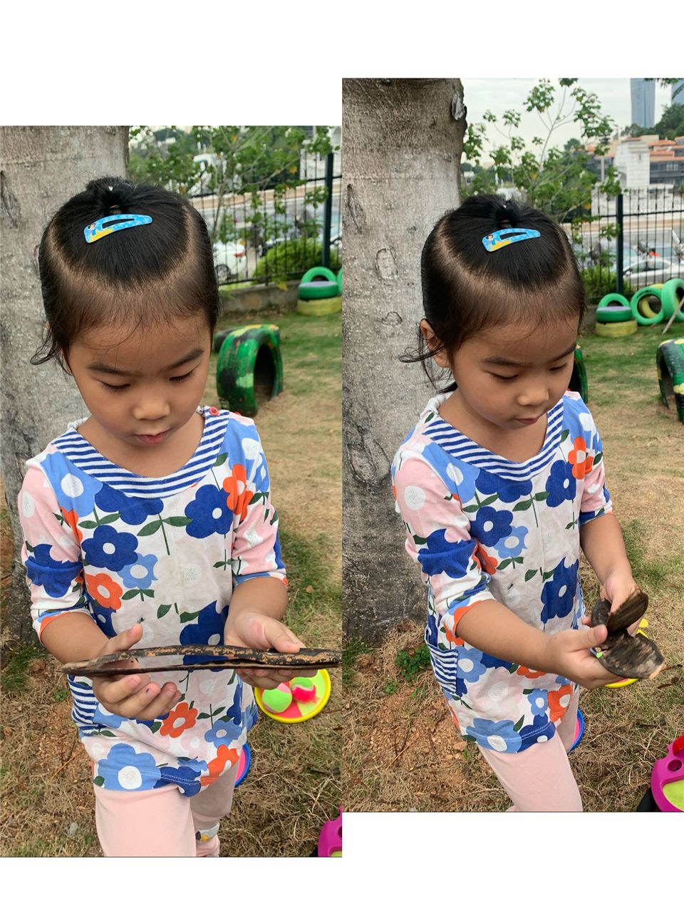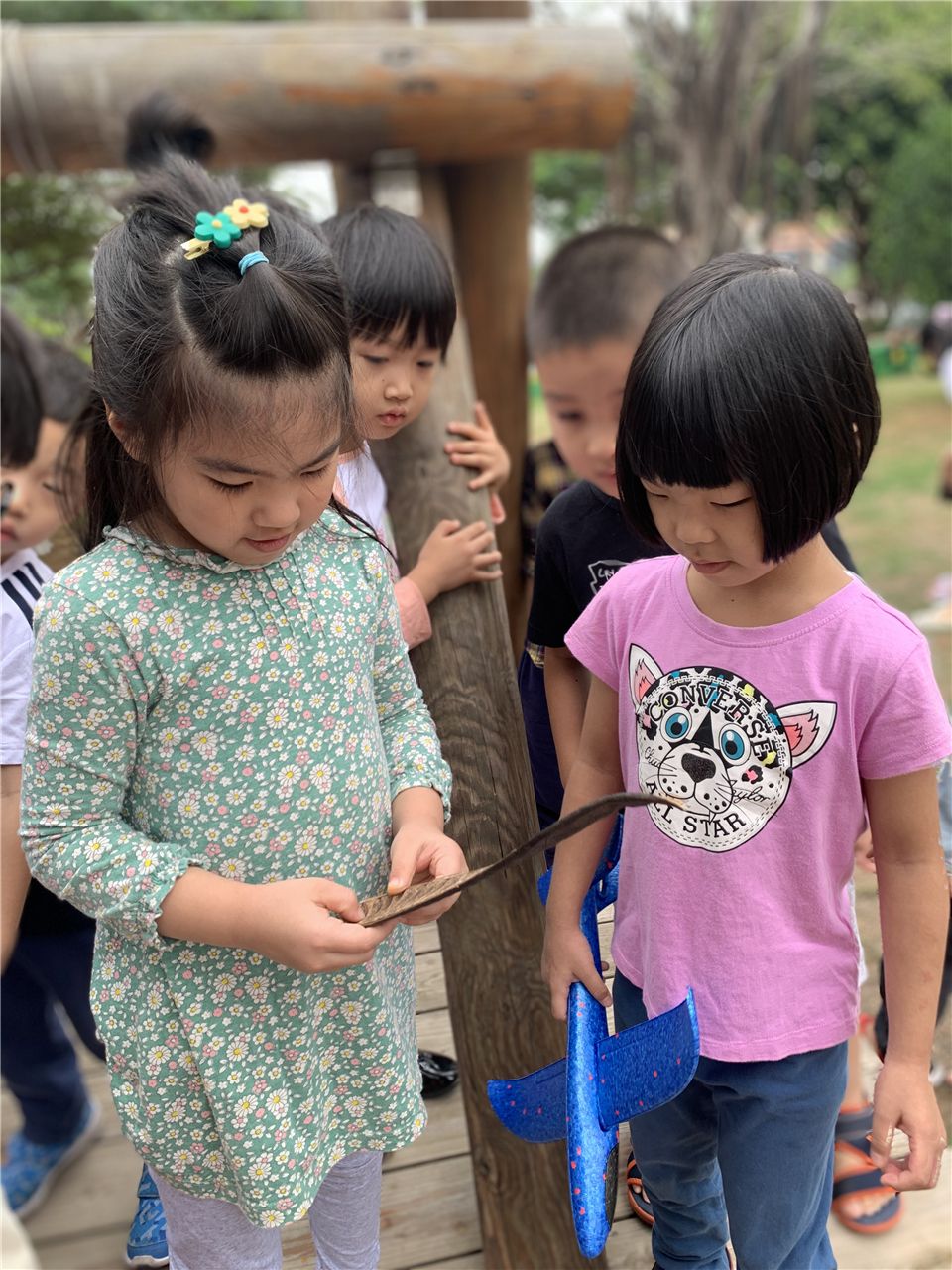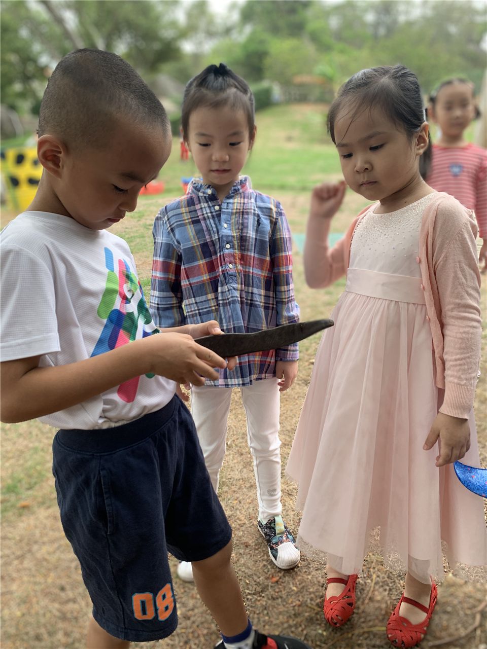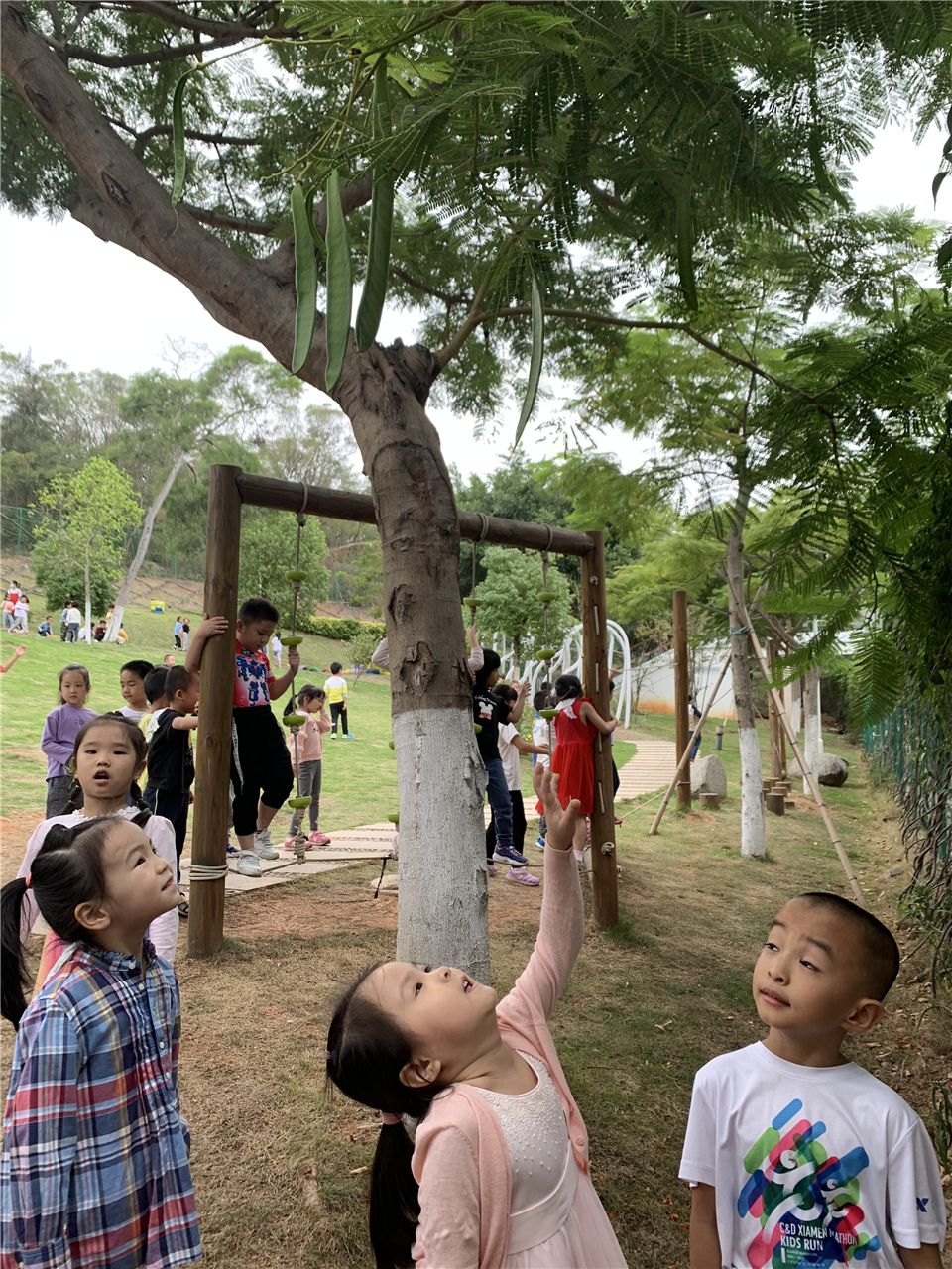 孩子们你一言我一语,对小山坡充满了探究的欲望。 是啊,孩子的天性就是喜欢大自然,天生对外界非常好奇,在大自然的环境中,孩子们的天性得到很好的释放。孩子们对“凤凰木”充满了疑问,瞧,我们的调查小分队开始行动起来了!
