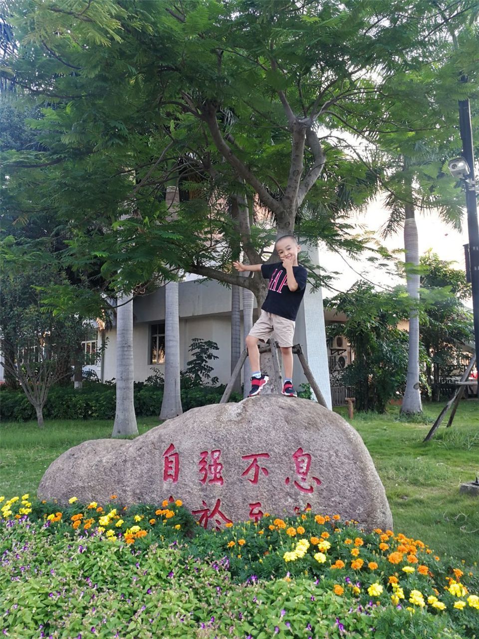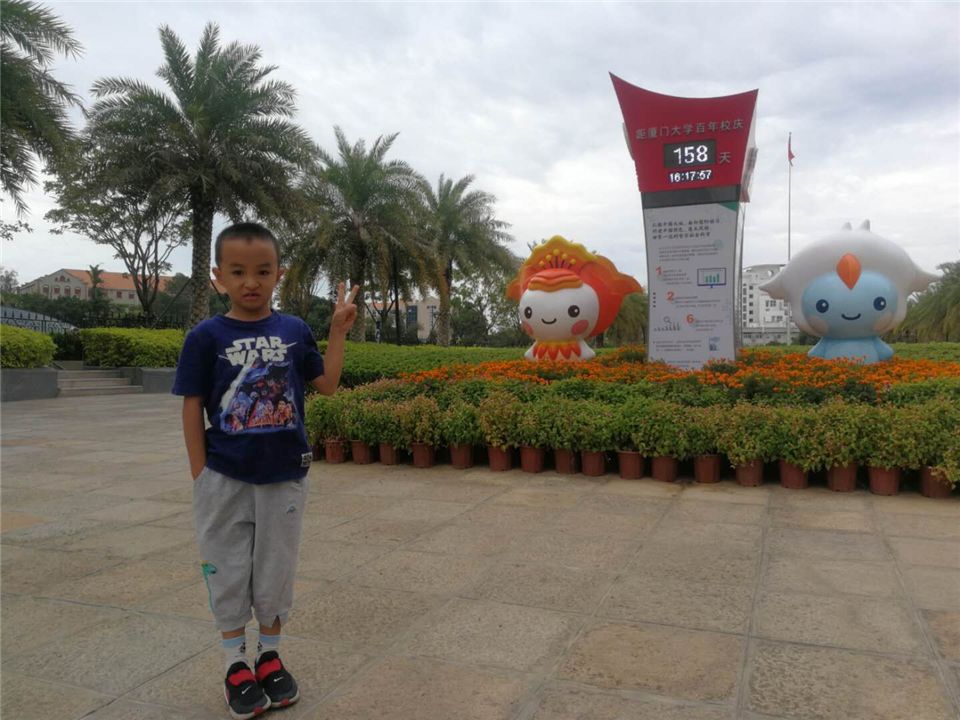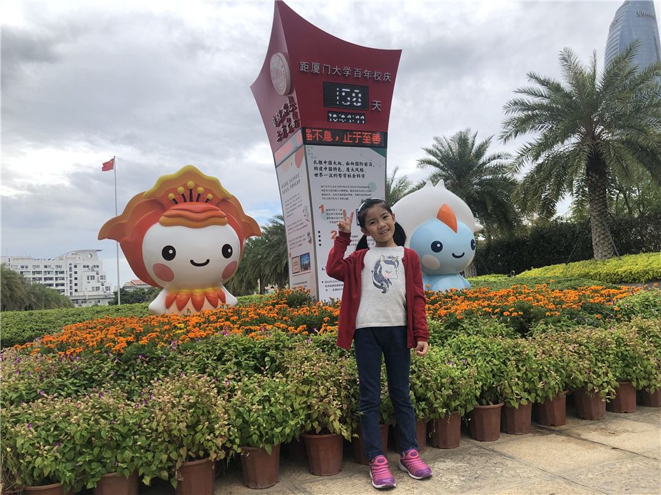 厦们大学的百年校庆快到了,你看,这就是吉祥物“小厦”。凤凰花火红绽放,展示着厦大弘扬爱国传统,在一流征程中自强不息。