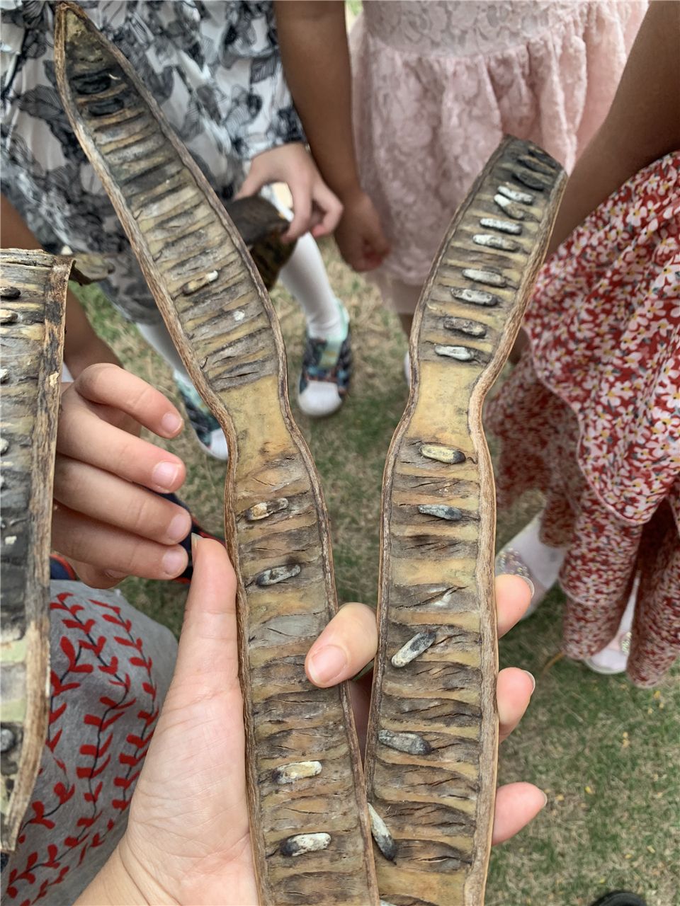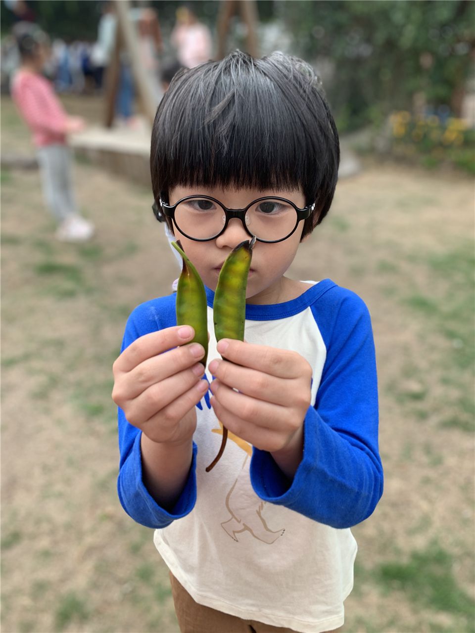 “老师老师,我捡到了小扁豆,应该是它小时候吧。”