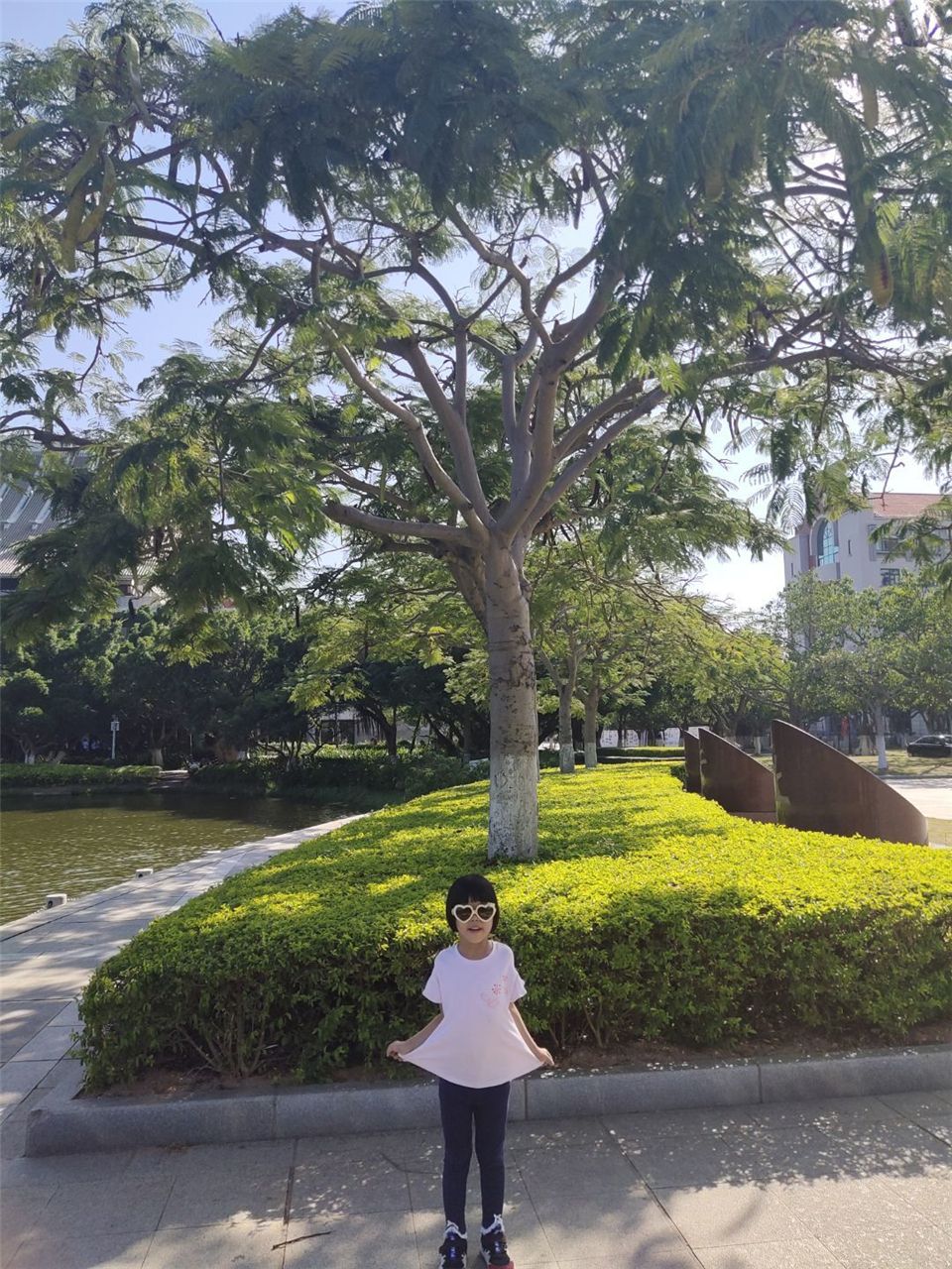 凤凰木别名金凤花、火树等,是落叶大乔木。山坡上发现的“扁豆”,它的名字叫“荚果”,里面一粒一粒的是它的种子。成熟的荚果自裂成二片,种子弹出自生。