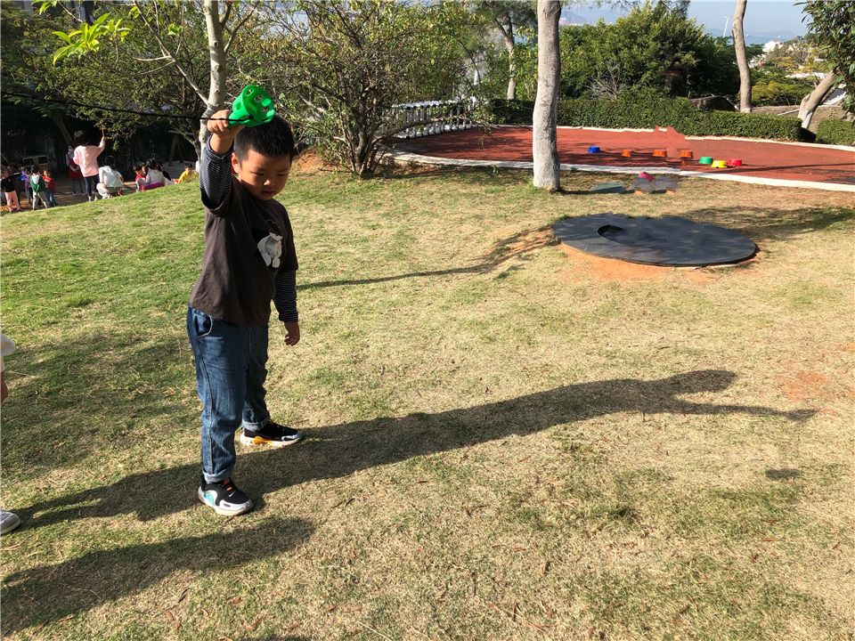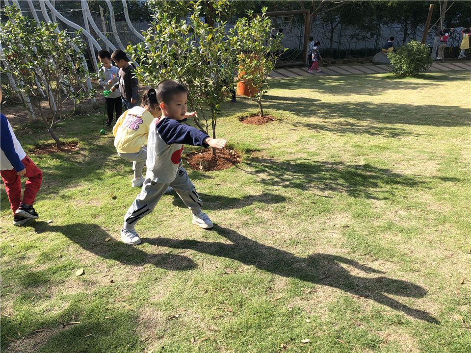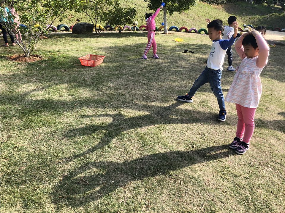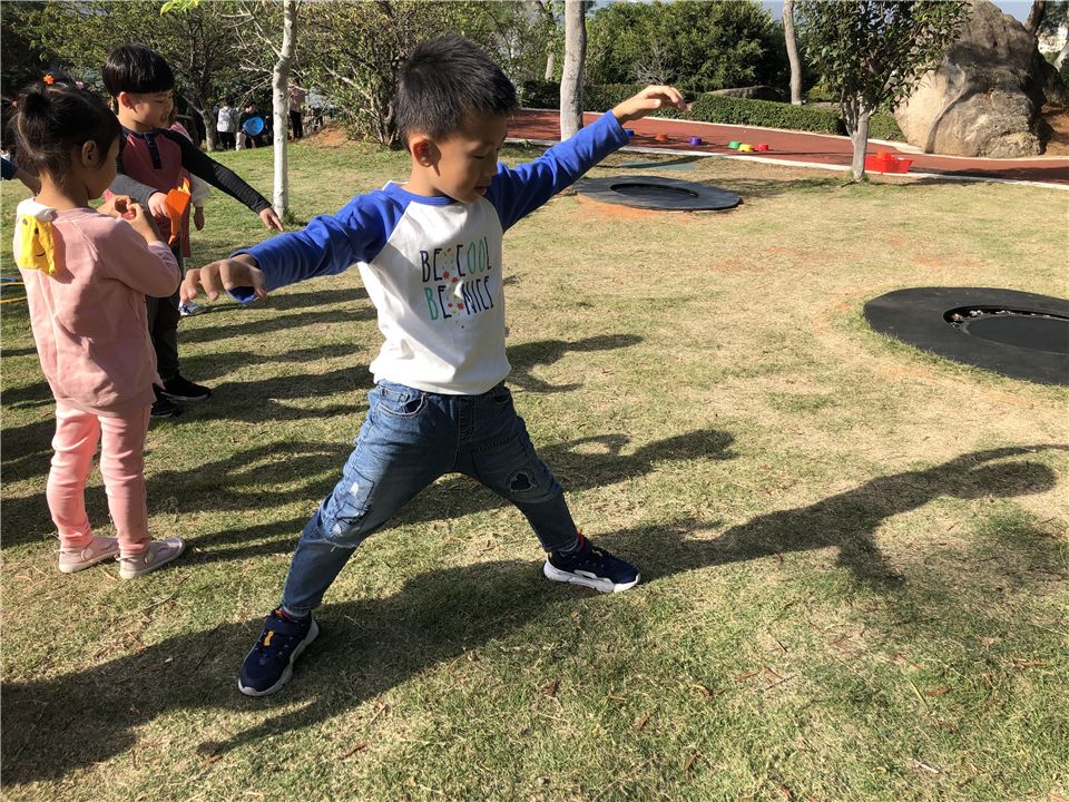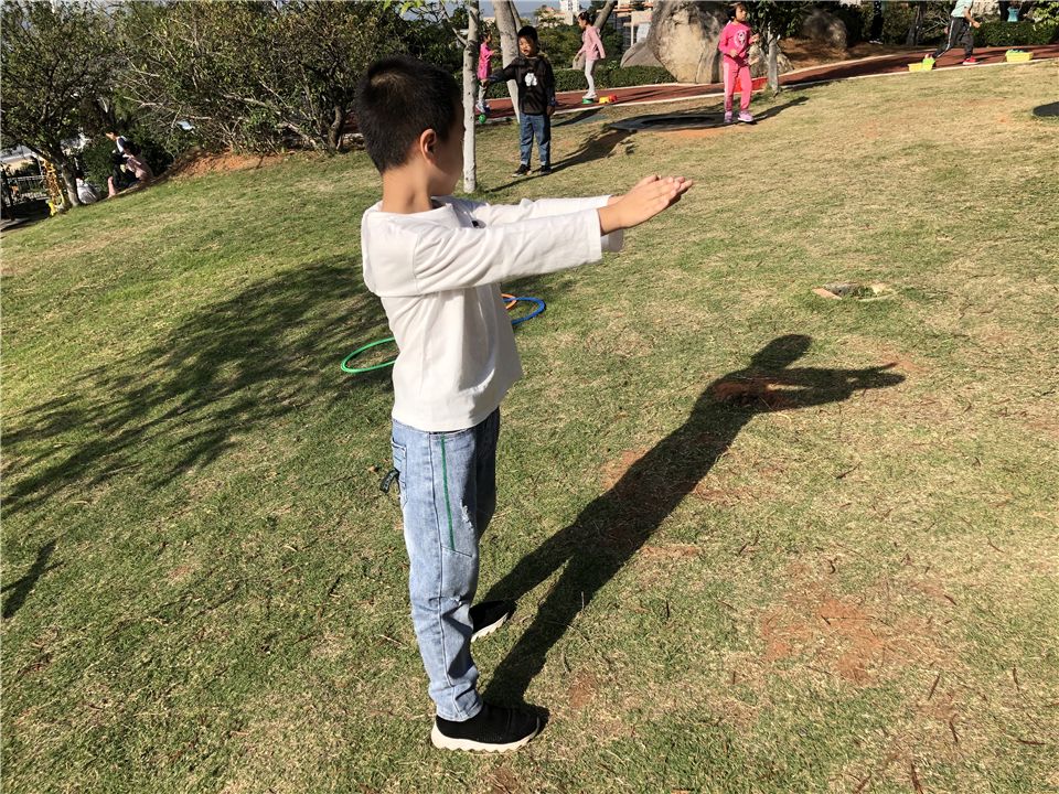 孩子们在阳光下摆出了各种造型,通过太阳光的照射和小朋友分享着自己的影子。